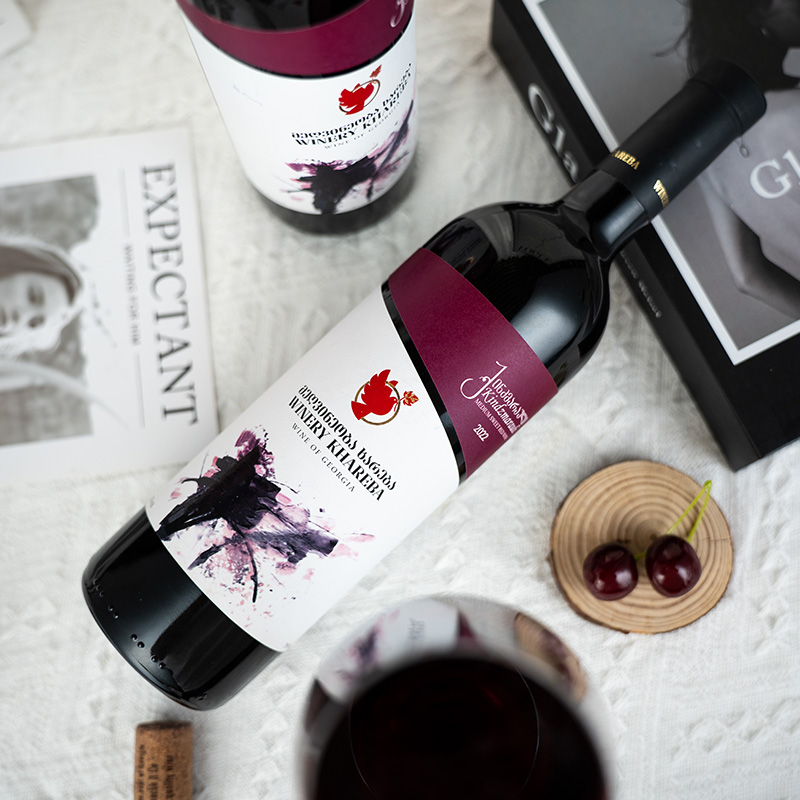 格鲁吉亚红酒葡萄酒水墨画哈列巴原瓶原装进口整箱半甜睡眠微醺酒