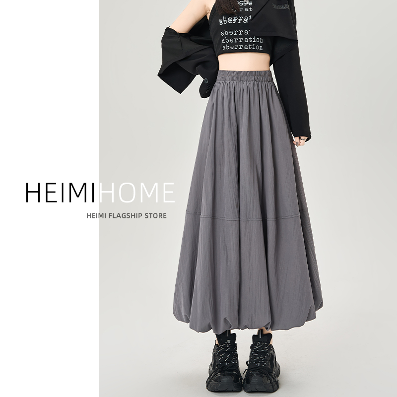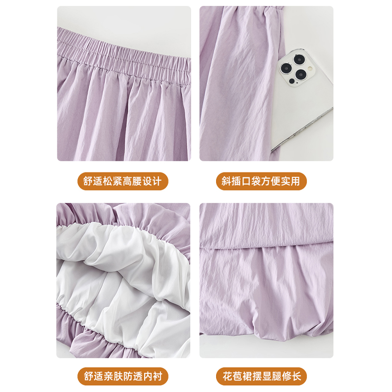 紫色花苞裙女春夏秋季高腰半身长裙灯笼裙日系中长款a字蓬蓬裙子
