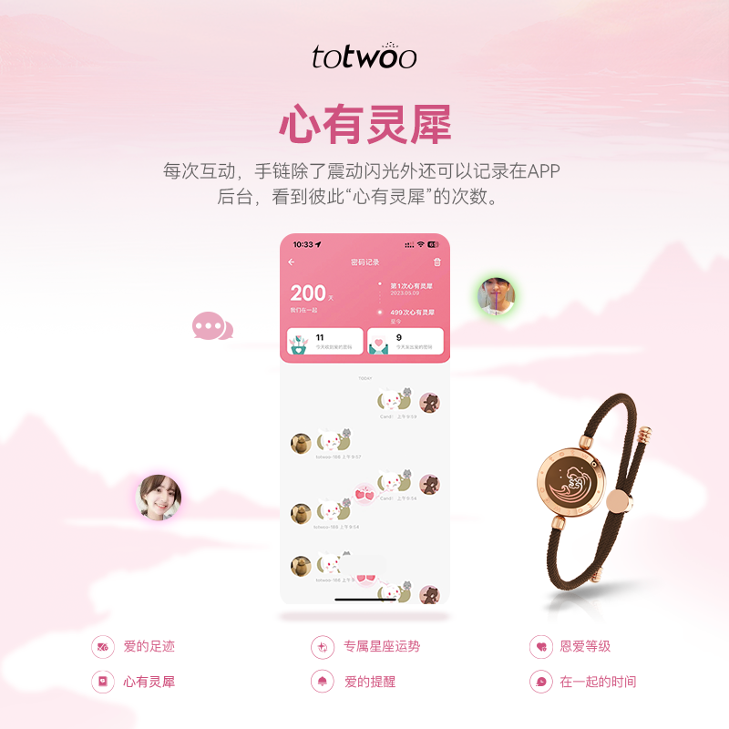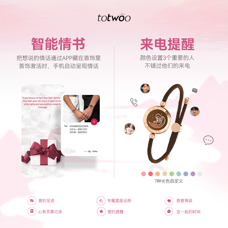 totwoo山盟海誓情侣手链异地恋远程感应情人节送男女朋友礼物纪念