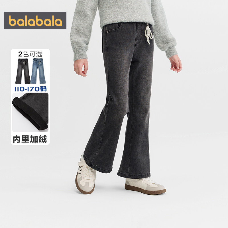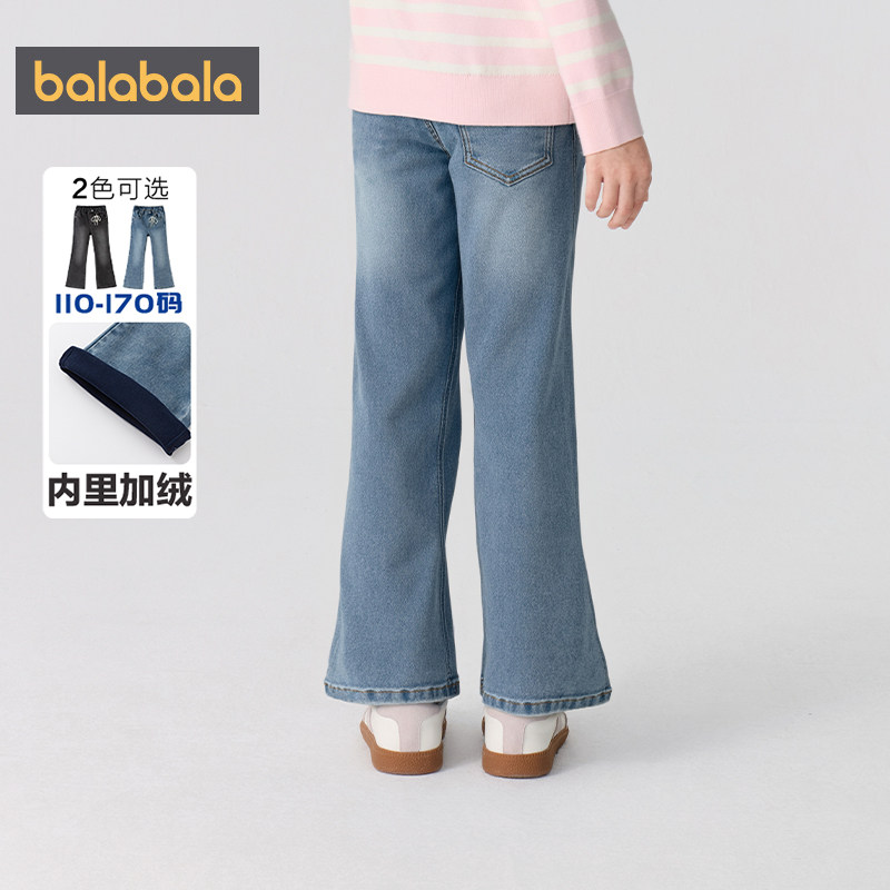 【商场同款】巴拉巴拉女童牛仔裤中大童加绒裤子秋冬款童装喇叭裤