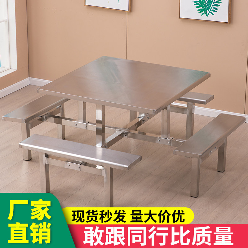 学校学生员工工地饭堂食堂餐桌椅组合4人6人8人位 不锈钢连体桌子