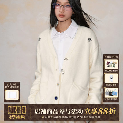 MEDM 简约纯色纽扣休闲开衫毛衣美式宽松情侣同款V领针织衫外套秋