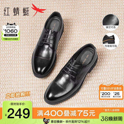 红蜻蜓男鞋春秋新款商务正装皮鞋真皮男士结婚新郎鞋内增高德比鞋