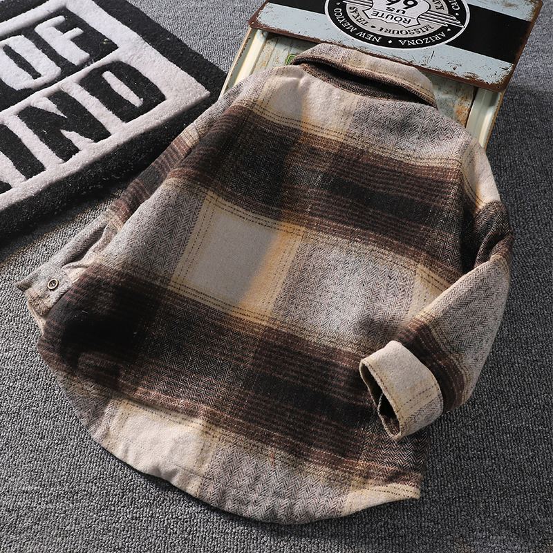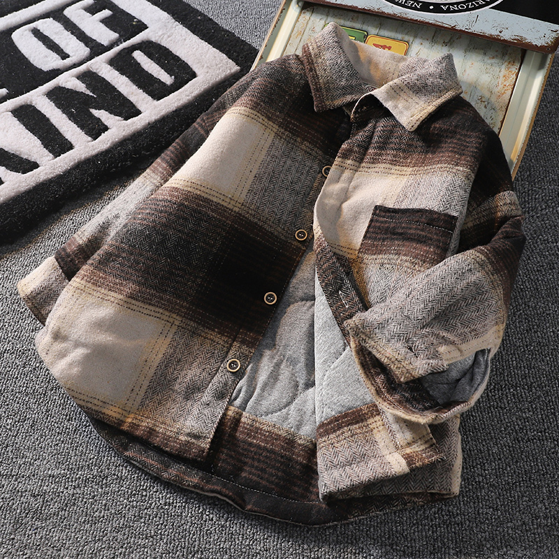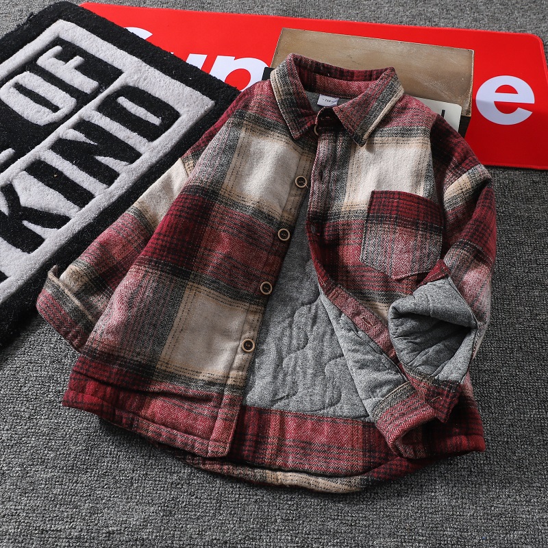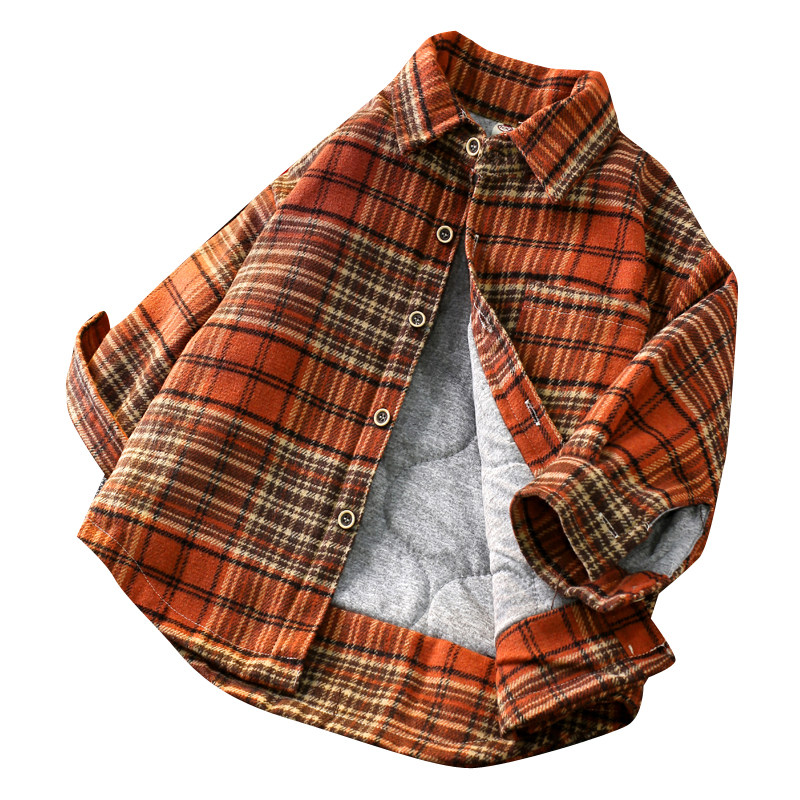 秋冬款男童加绒衬衫夹棉儿童一体绒加厚冬季加棉保暖衬衣磨毛格子