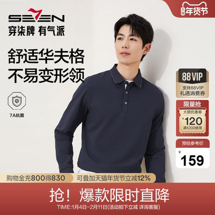 【华夫格/不变形领】柒牌翻领长袖Polo衫男士秋季新款商务休闲T恤
