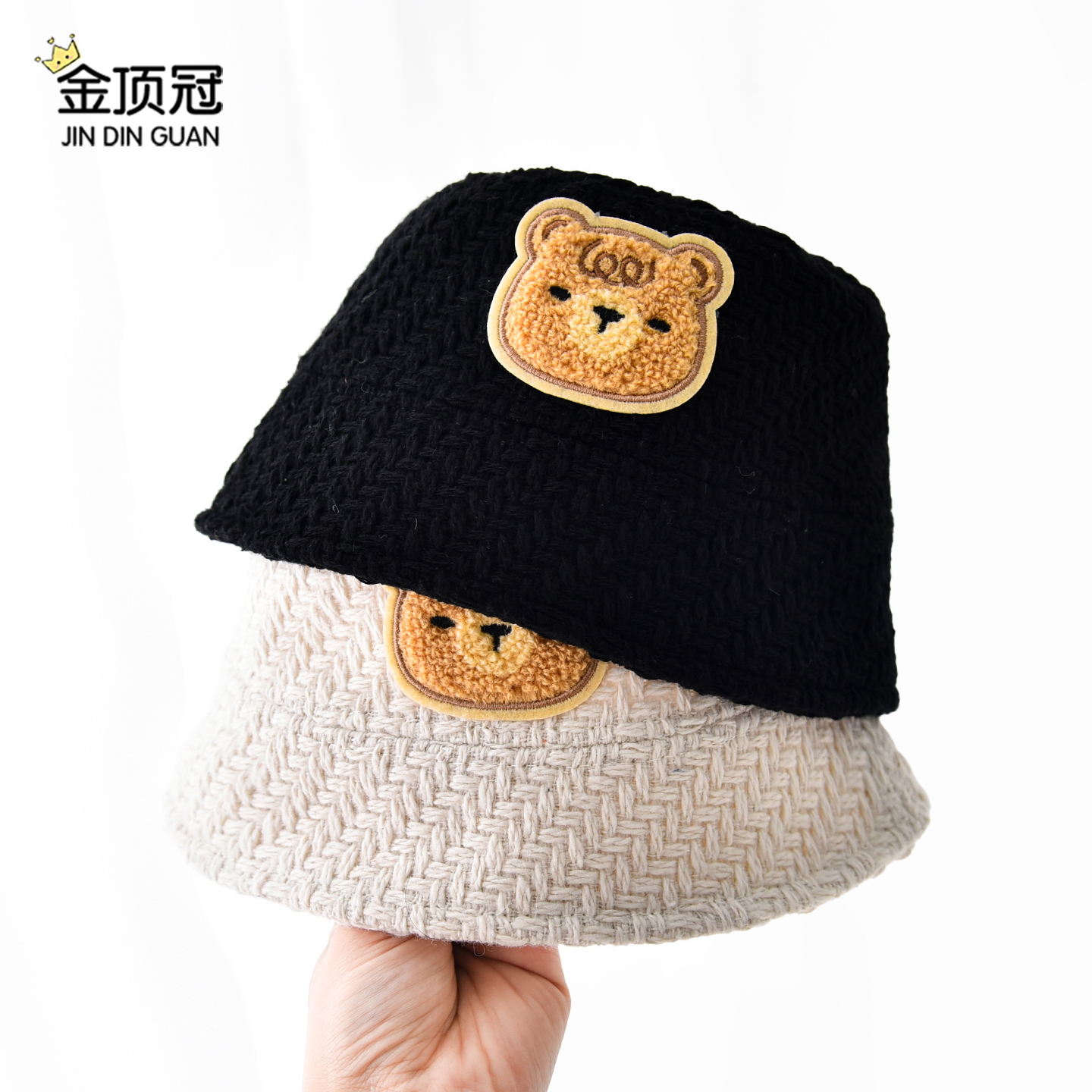 儿童帽子秋冬季小熊渔夫帽