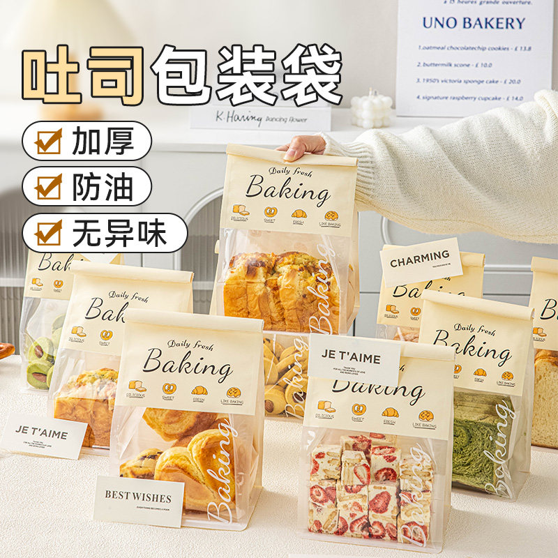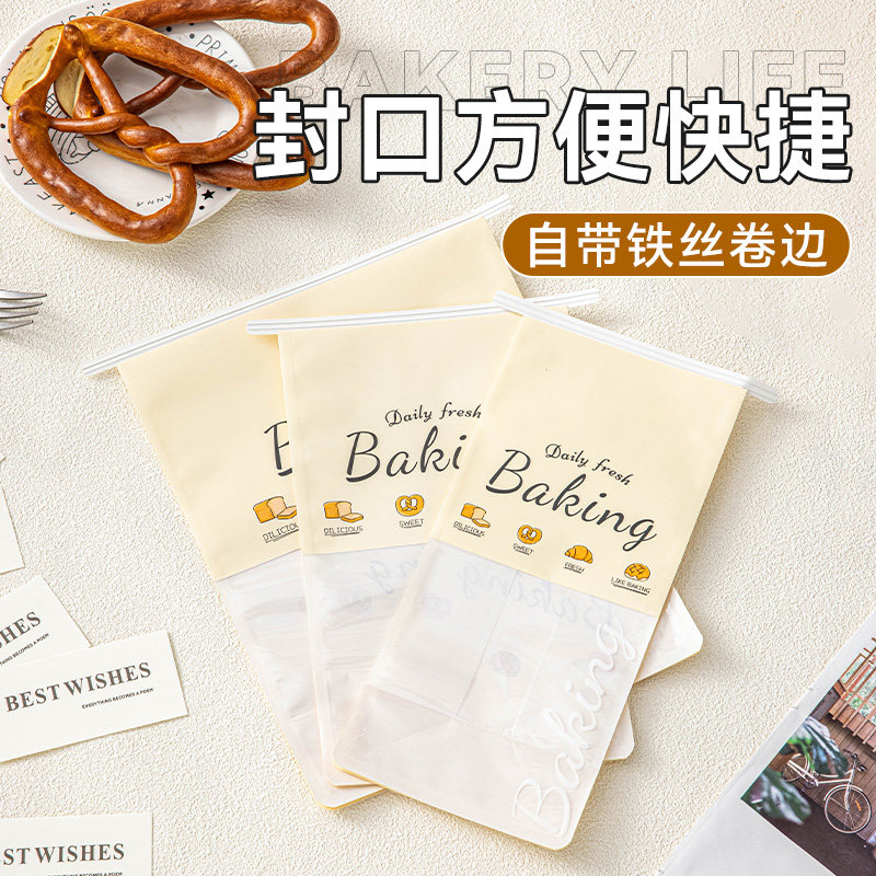透明开窗吐司袋面包打包袋自封铁丝卷边切片土司包装袋50只100 只