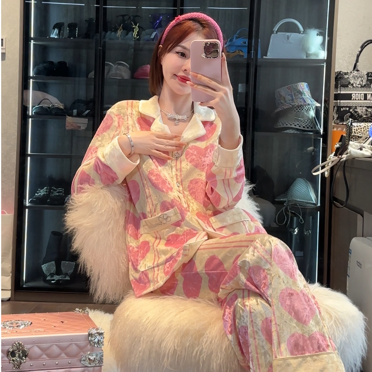 DIMDEVL汀黛25年秋冬睡衣女怦然心动爱心粉色可爱丝绒家居服套装