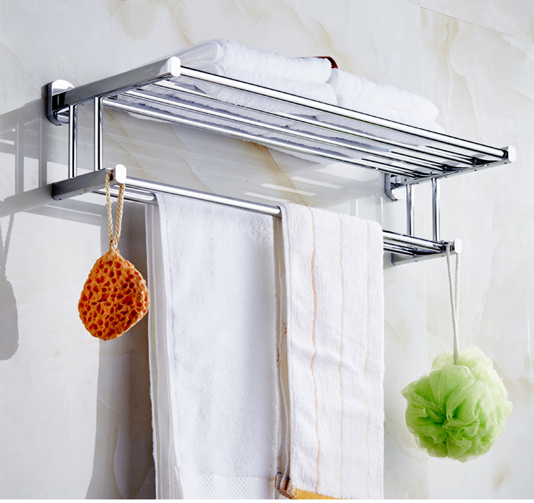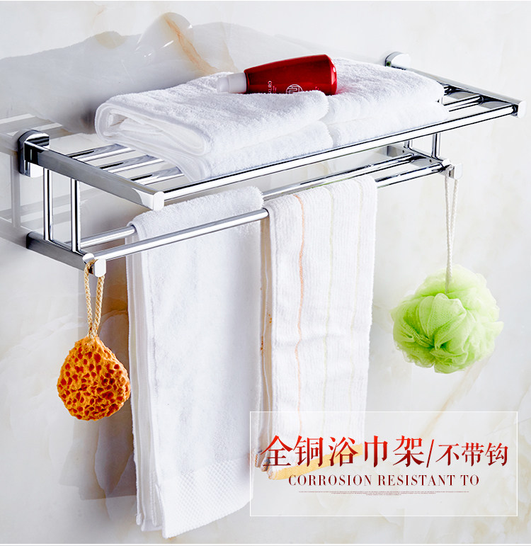 卫生间毛巾架全铜浴巾架双层毛巾挂钩置物架浴室五金挂件壁挂