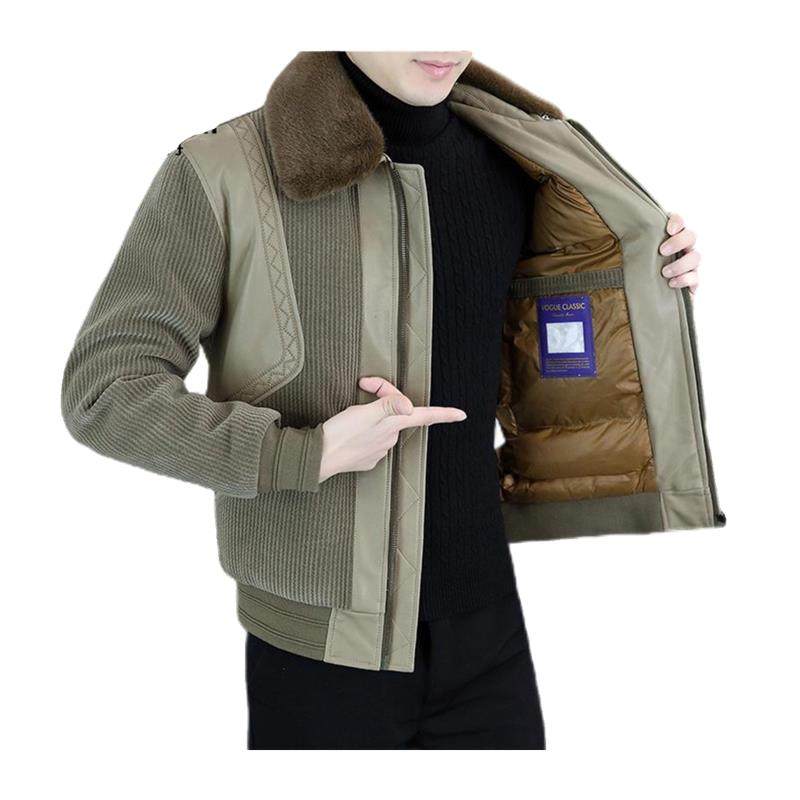秋冬季纯棉夹克男加绒飞行员外套宽松休闲男士立领工装夹克衫耐磨