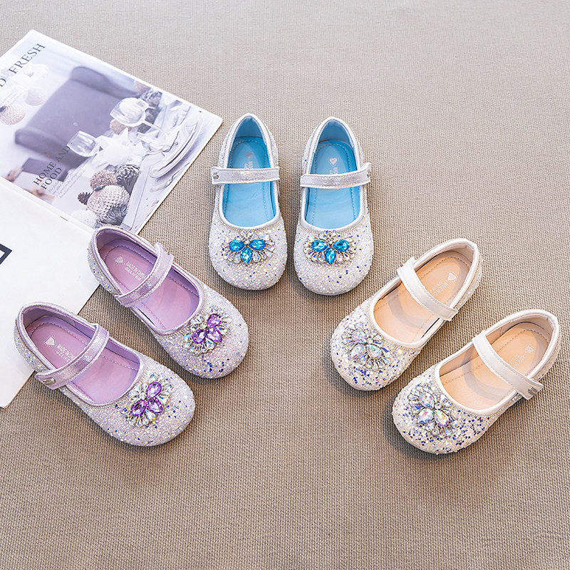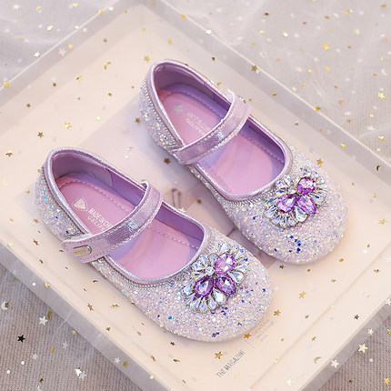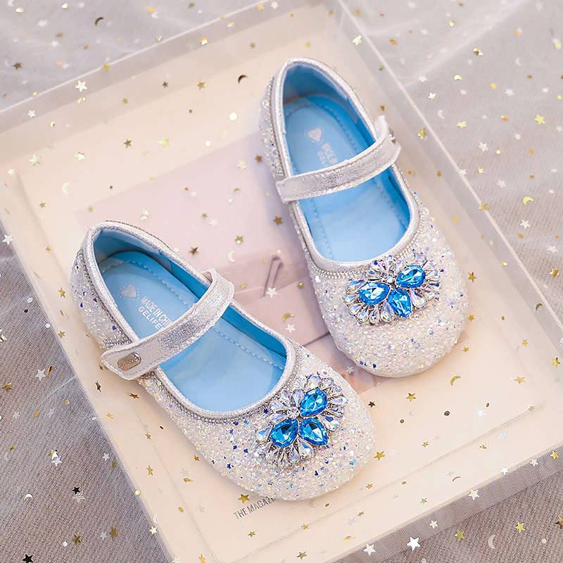 真皮艾莎公主鞋女童水晶鞋单鞋软