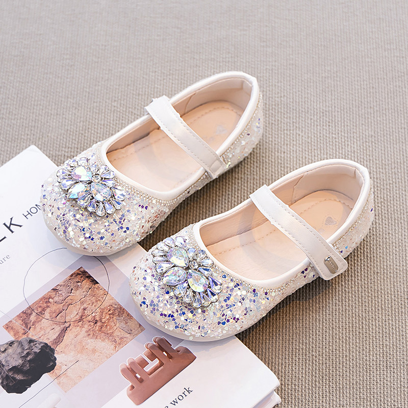 真皮艾莎公主鞋女童水晶鞋2025新款秋季儿童小皮鞋女宝宝单鞋软底