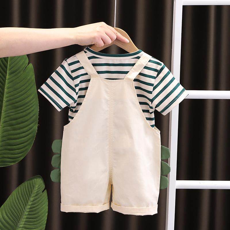 婴儿背带裤套装男童宝宝夏装两件套潮衣小男孩可爱洋气儿童连体衣