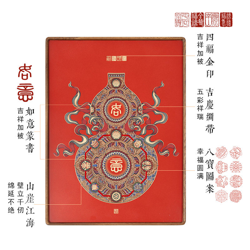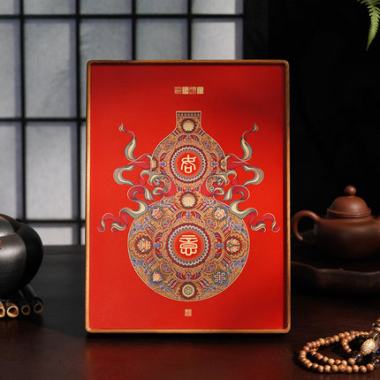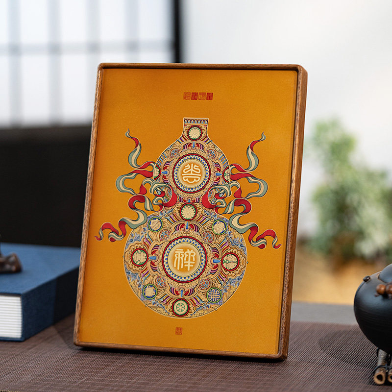 中式黄铜摆件葫芦高端商务乔迁礼盒礼品客厅装饰画桌面摆台画相框