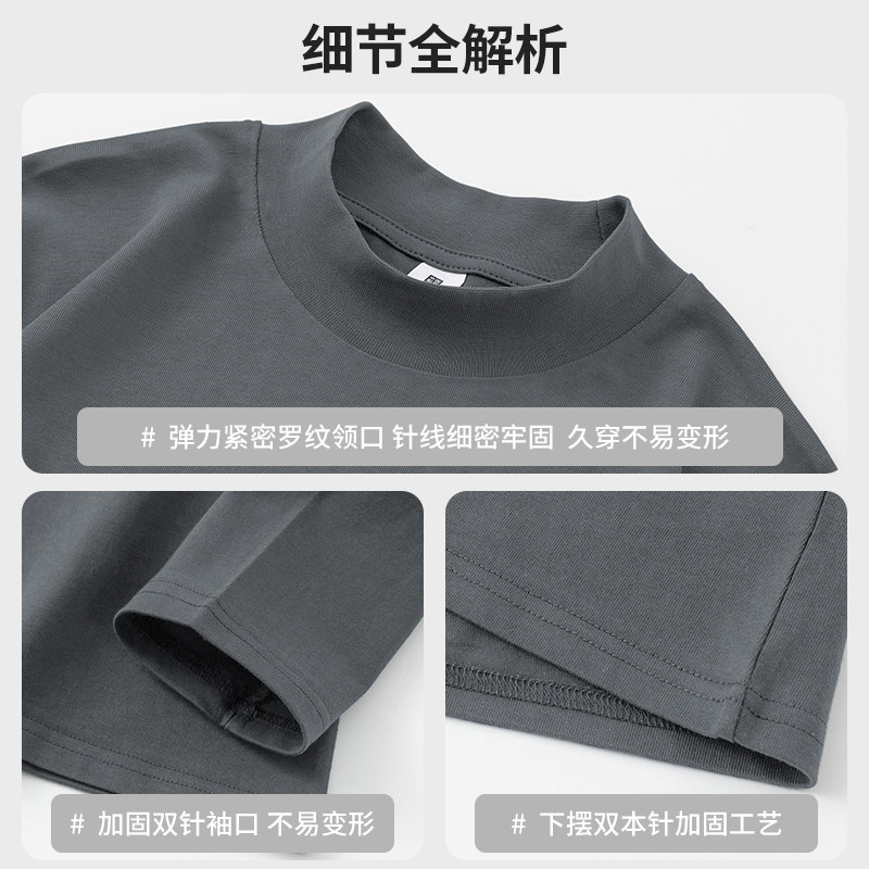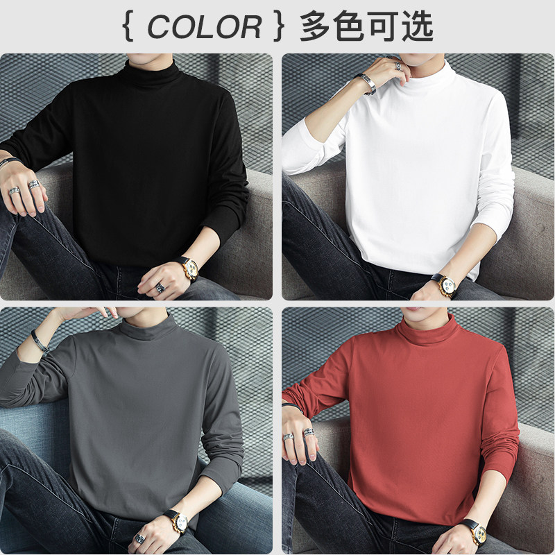 纯棉t恤男长袖秋冬内搭半高领打底衫纯色上衣服中领小衫全棉体恤