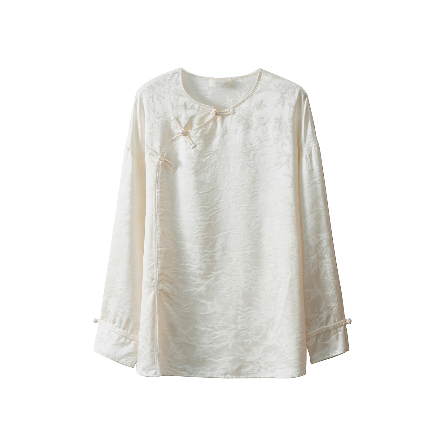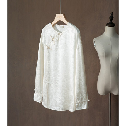 高定 真丝提花花萝斜门襟圆领上衣女100%桑蚕丝新中式衬衫2026春