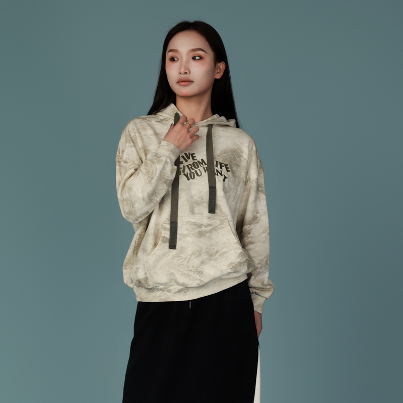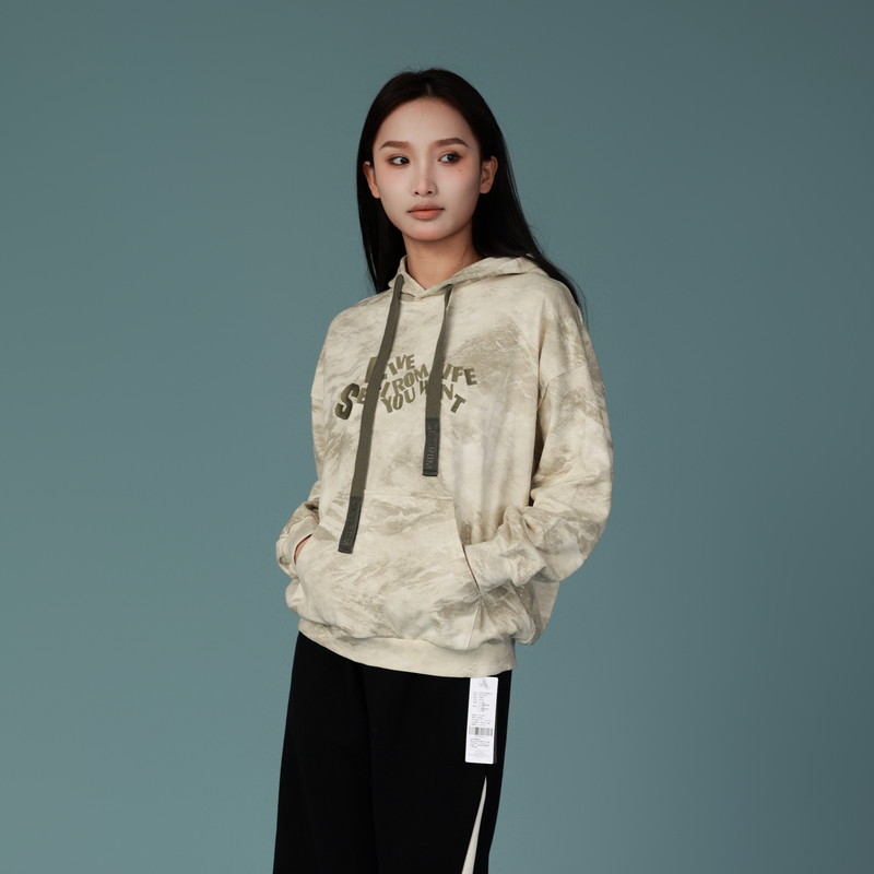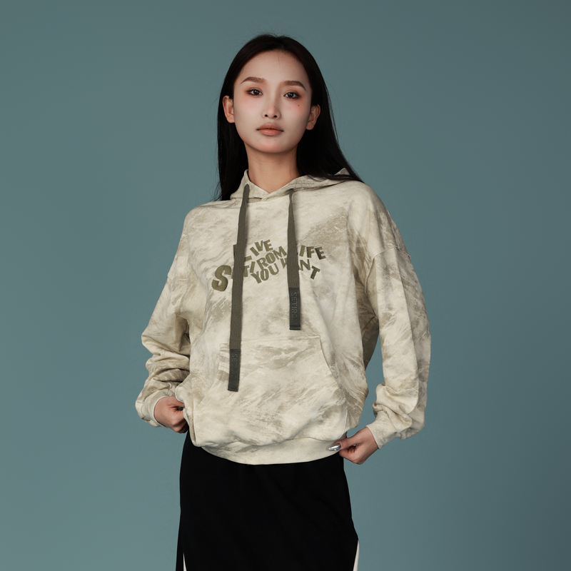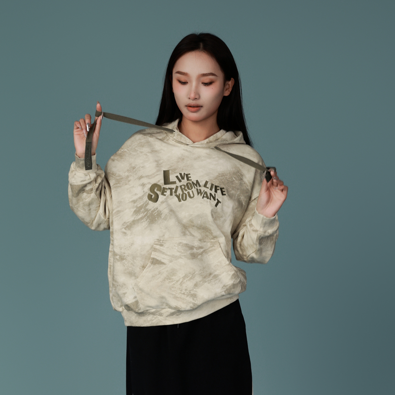 西町村屋字母扎染带帽卫衣女春季新款复古百搭宽松上衣HA9108005