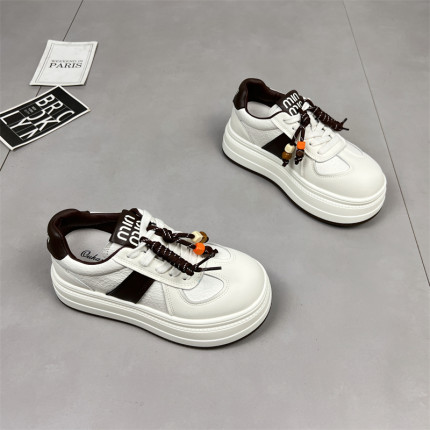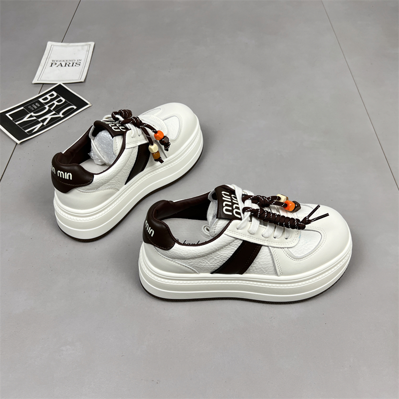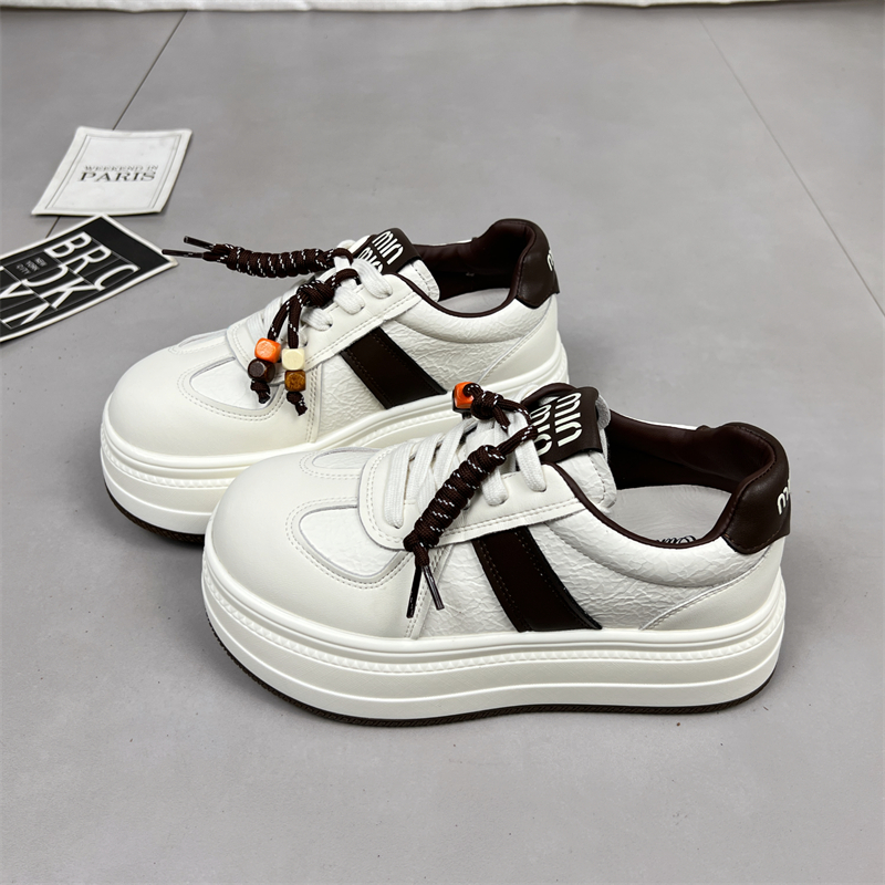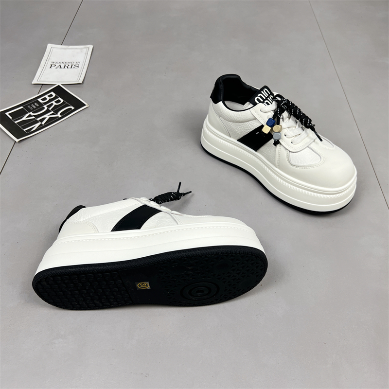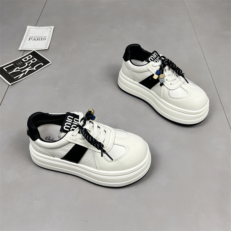 真皮厚底小白鞋女2025秋季新款圆头系带增高运动防滑休闲德训板鞋