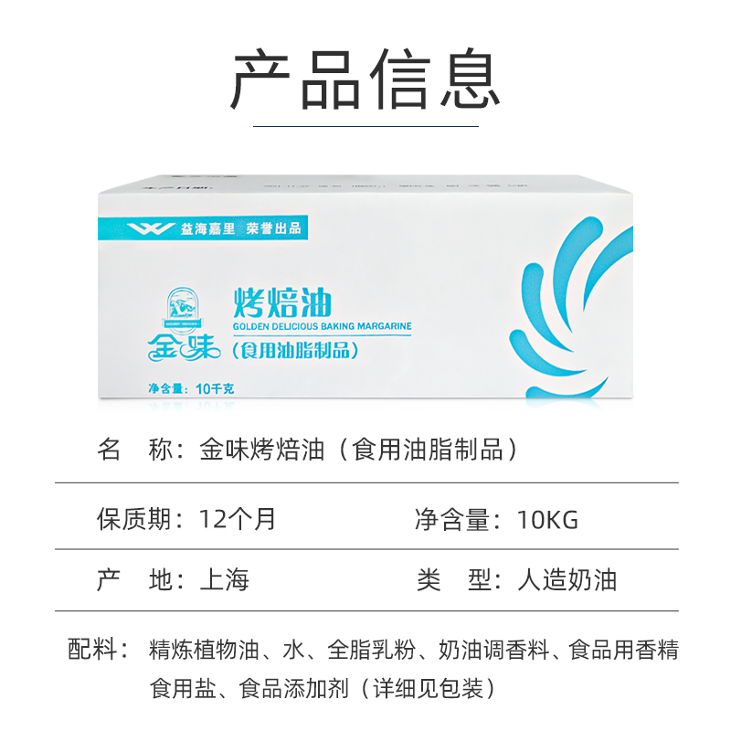 益海嘉里金味烤焙油10kg黄油曲奇饼干面包烤焙起酥油烘焙用