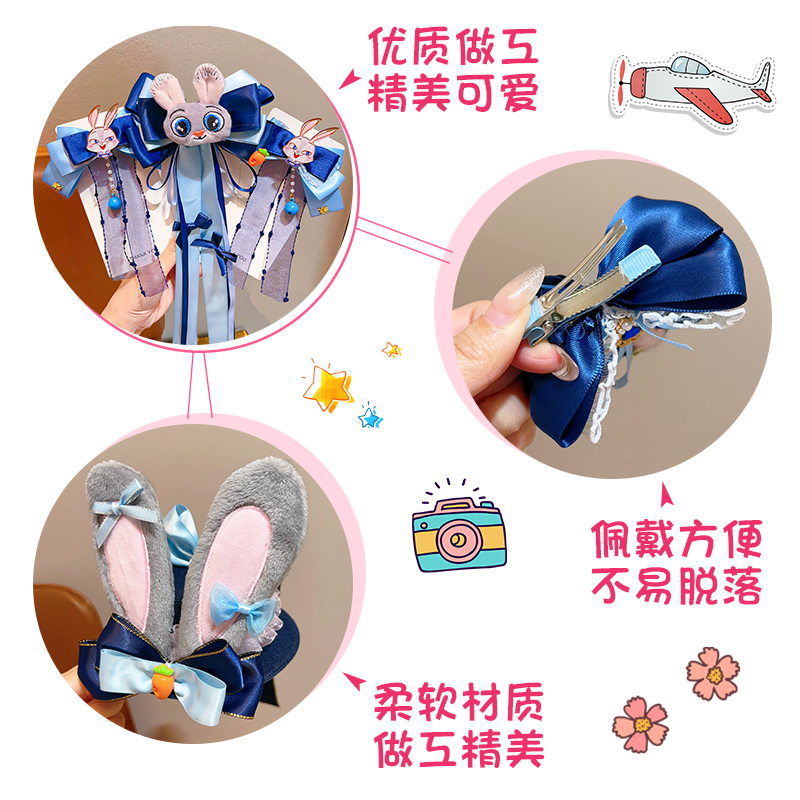 迪士尼头饰兔子警官发饰朱迪帽子发夹兔耳朵发箍小女孩发卡子饰品