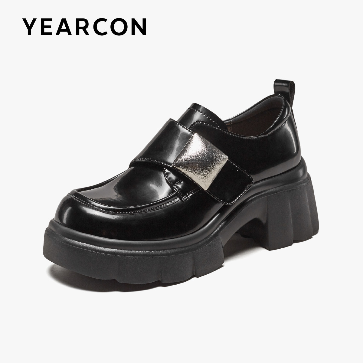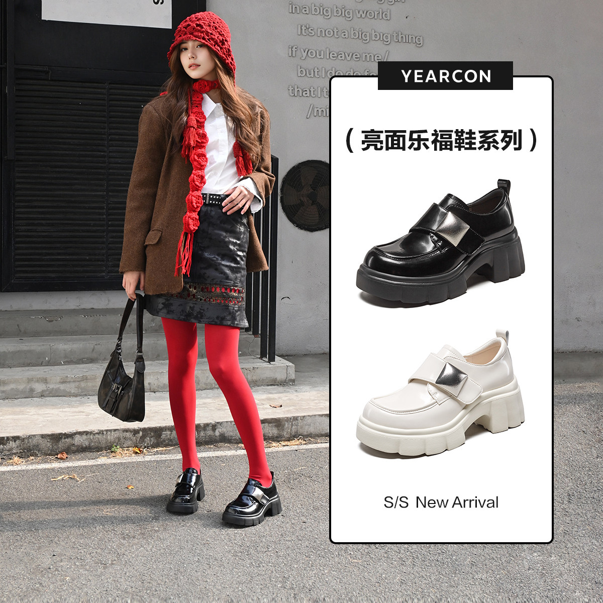 意尔康英伦风厚底乐福鞋女2026春季款粗跟小皮鞋魔术贴增高单鞋