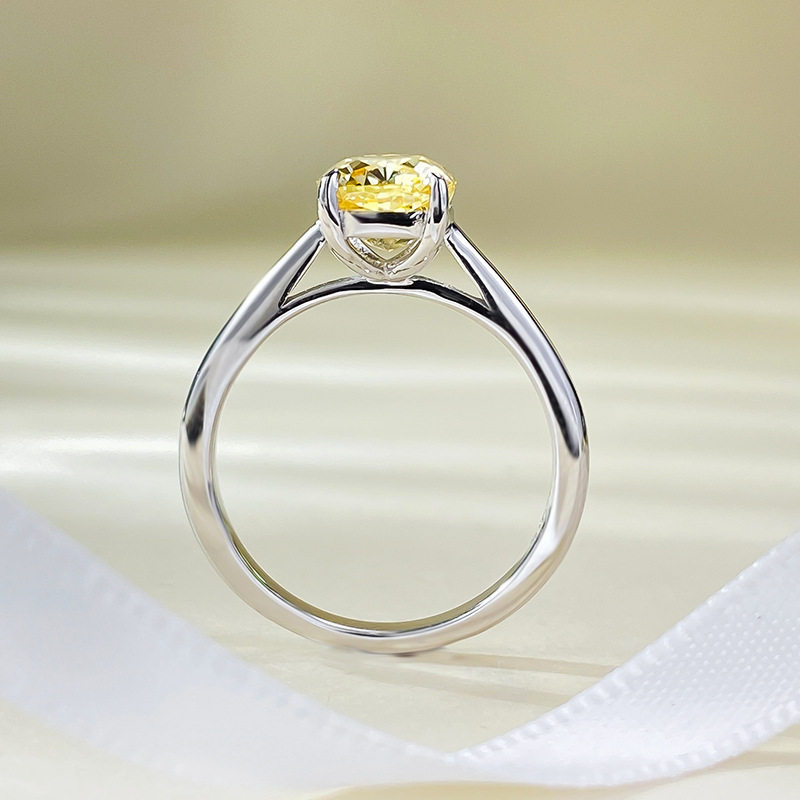高级珠宝S925银1.25克拉枕形黄钻戒指方形仿真钻石戒指女结婚戒