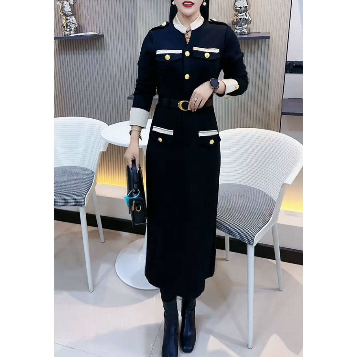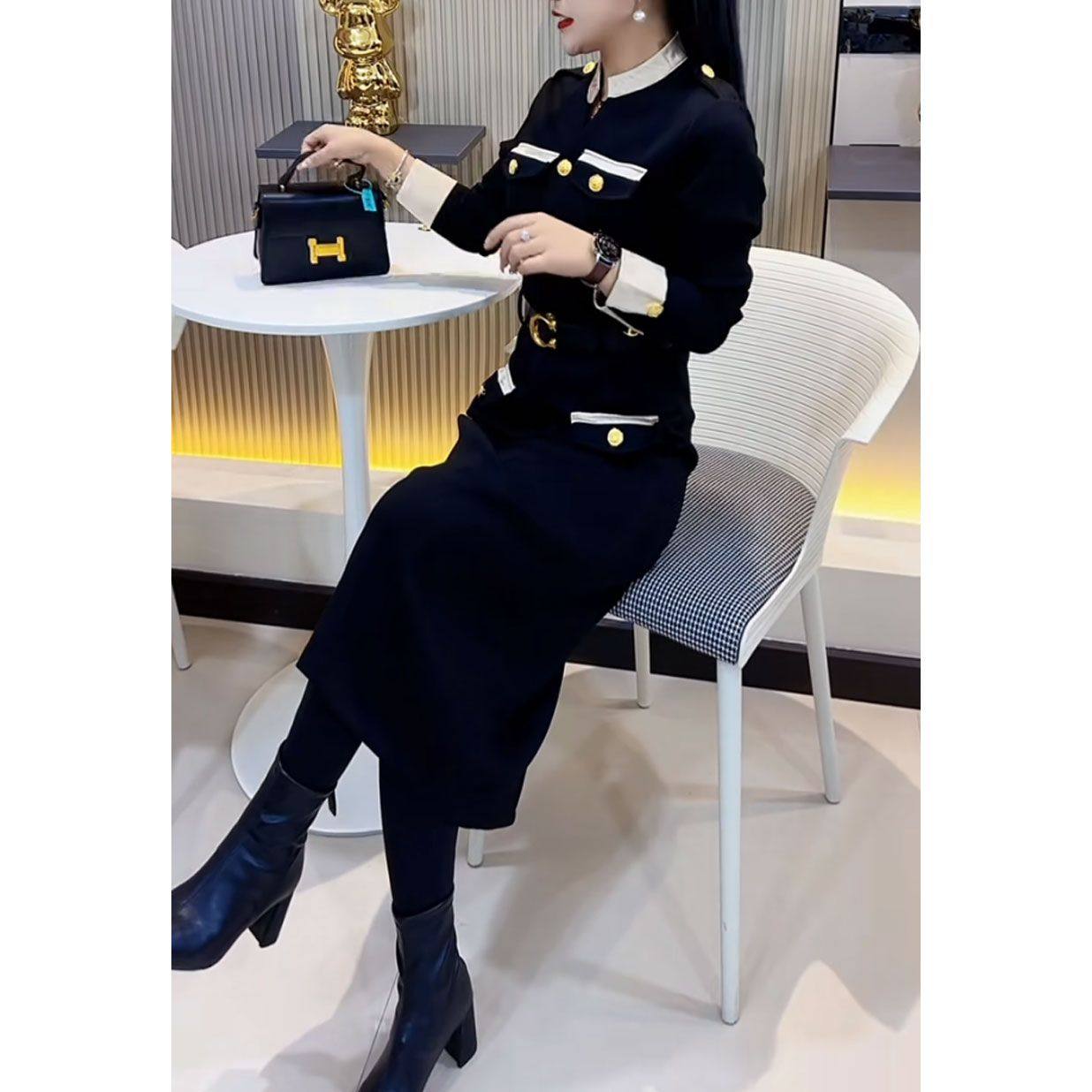 新款胖mm气质收腰显瘦加厚打底裙子秋冬季大码黑色小香风连衣裙女