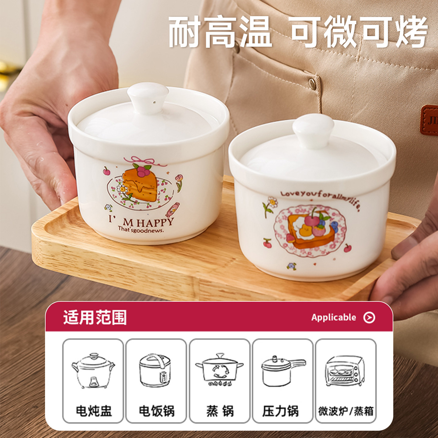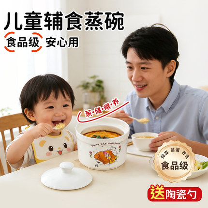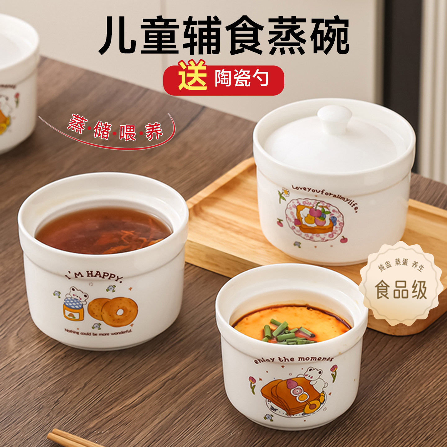 陶瓷小炖盅带盖蒸蛋碗专用婴儿宝宝辅食蒸鸡蛋羹食品级蒸碗小汤盅
