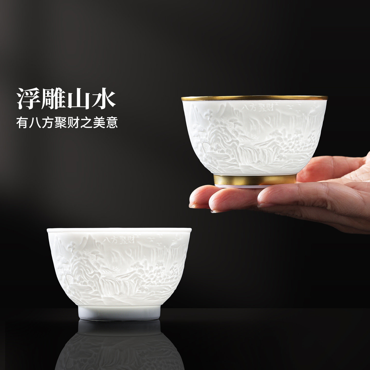 景德镇陶瓷茶具功夫茶杯手工雕刻八方聚财主人杯高档个人专用送礼