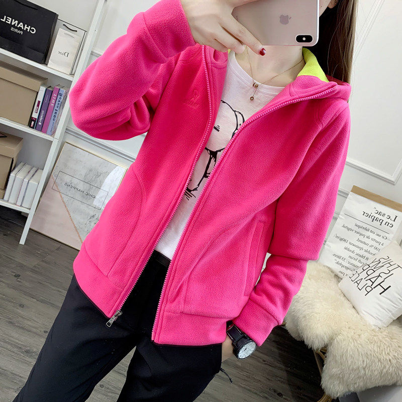 凯乐石薄荷户外休闲连帽抓绒衣女上衣摇粒绒开衫保暖登山徒步卫衣
