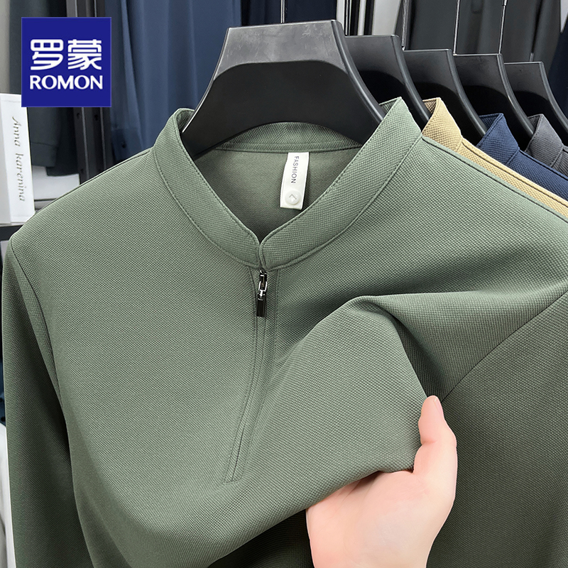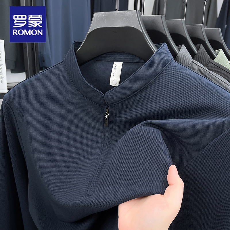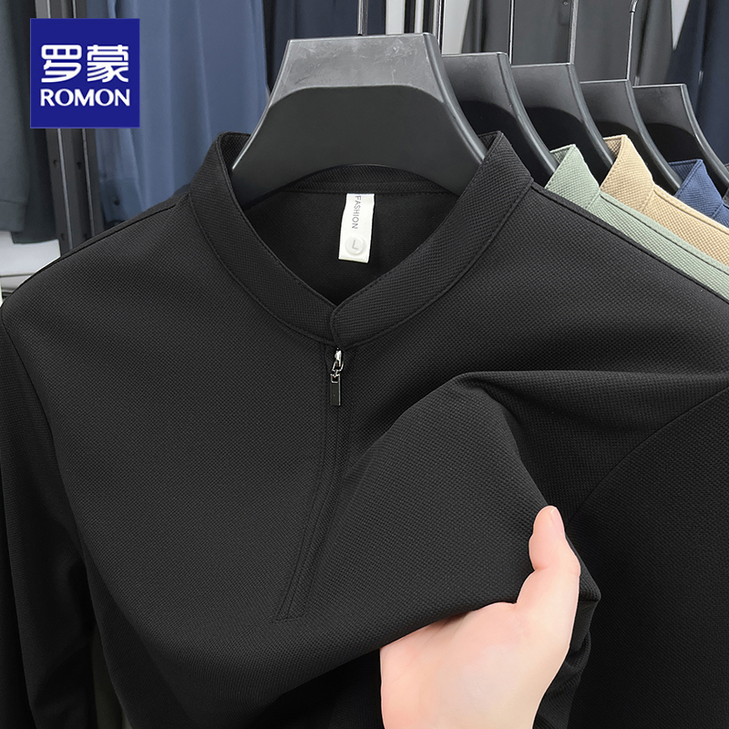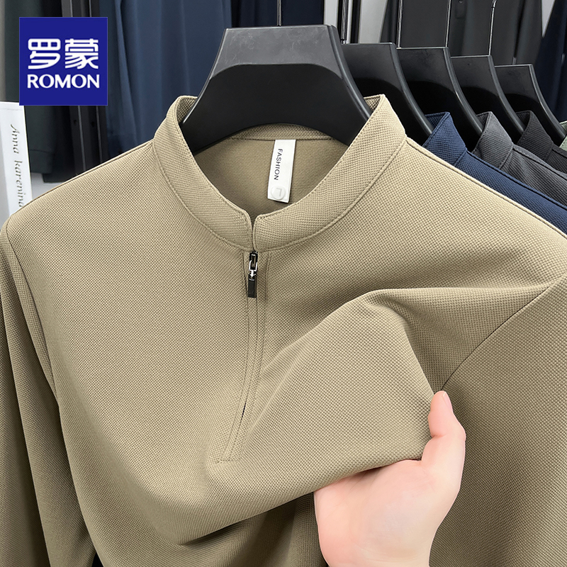 罗蒙男士半拉链立领长袖T恤衫2025新款春秋装纯色休闲百搭打底衫