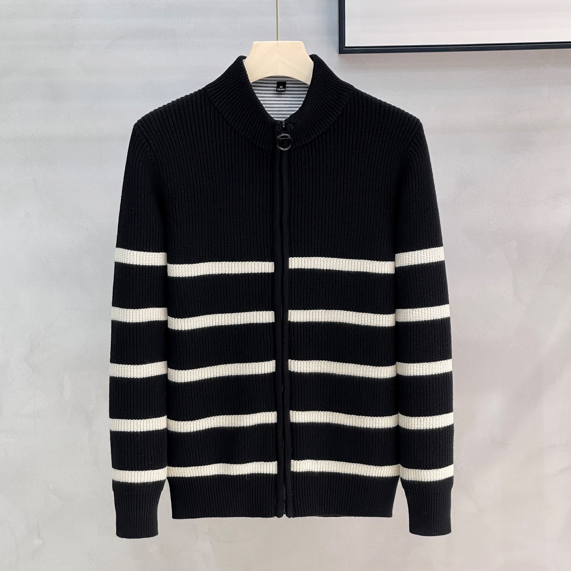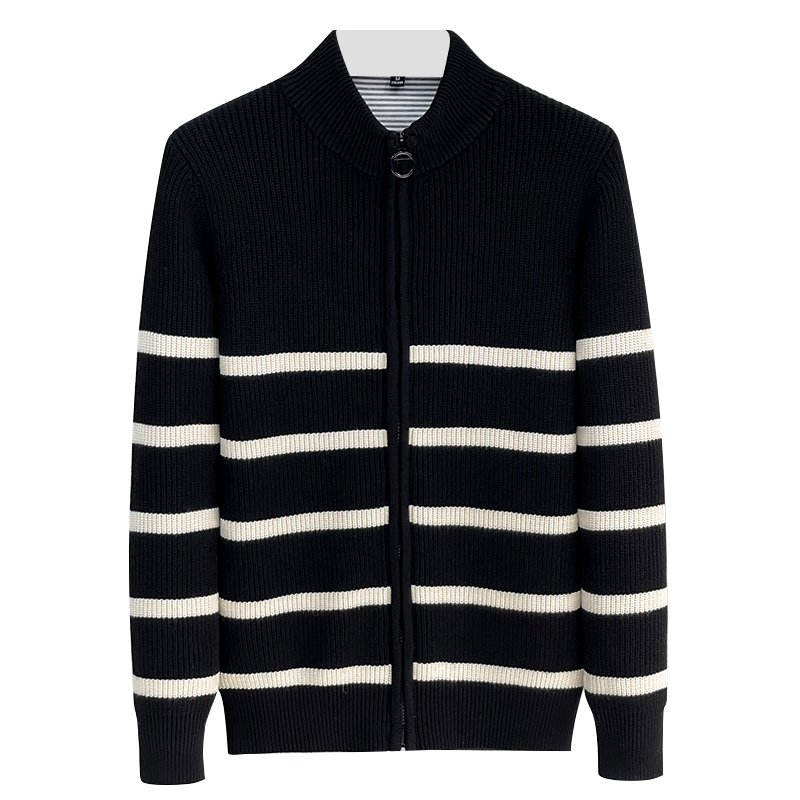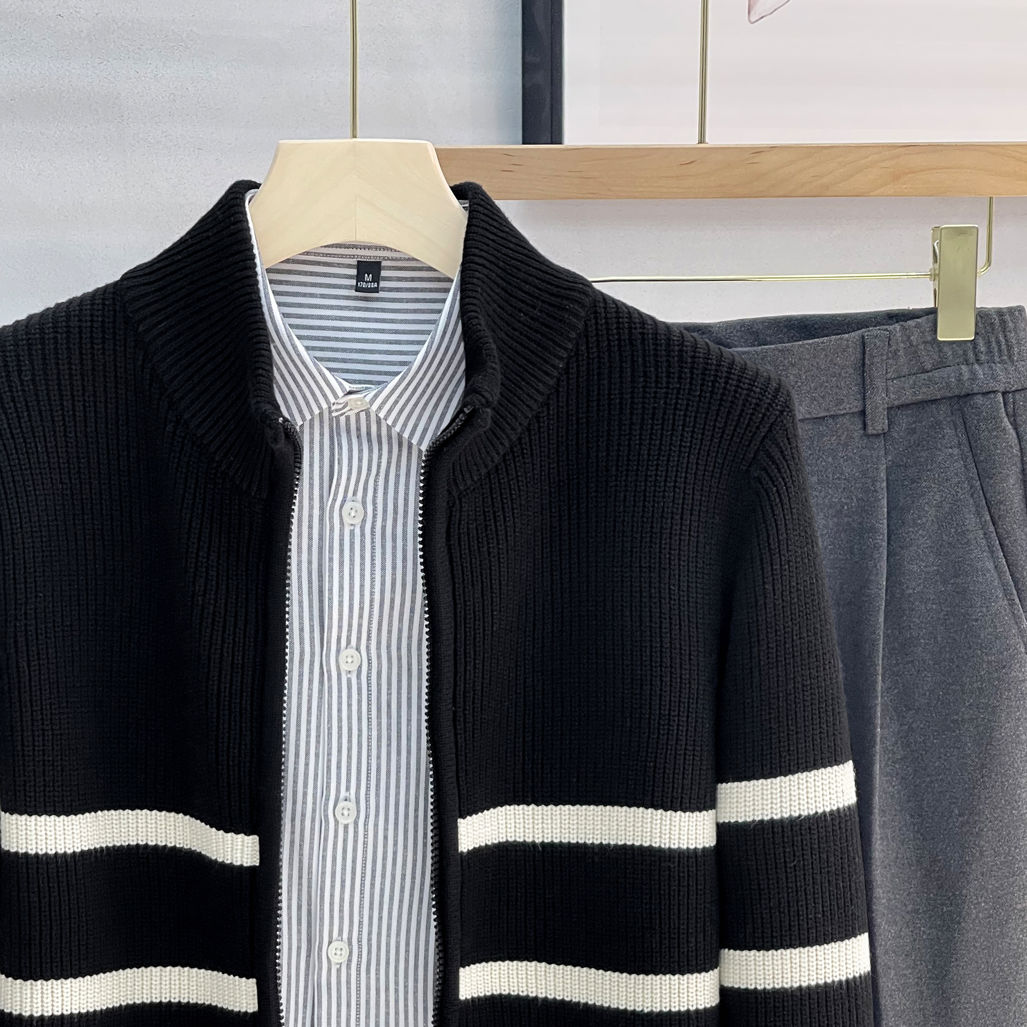 立领开衫男针织衫高级感半高领拉链条纹毛衣男士外套秋冬2025新款