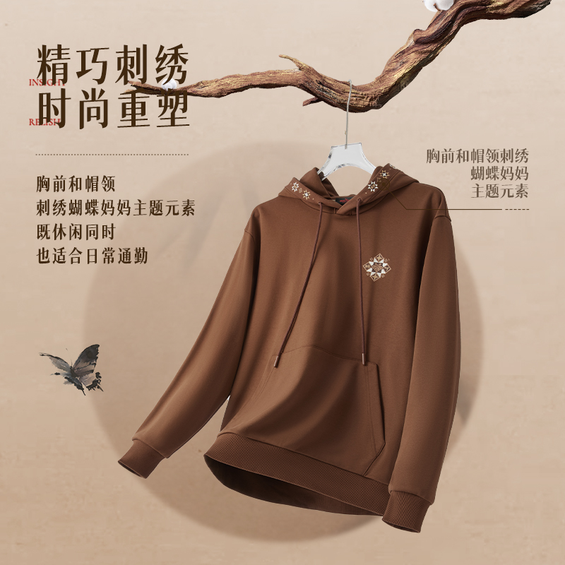 【非遗苗绣蝴蝶妈妈系列】柒牌卫衣男款连帽秋季新款时尚休闲上衣