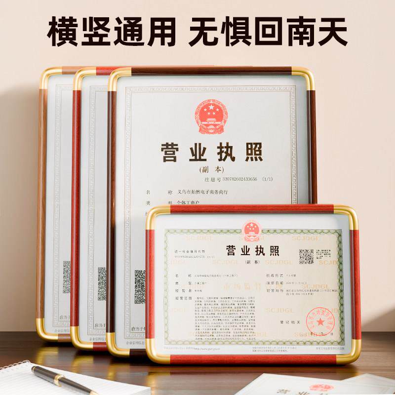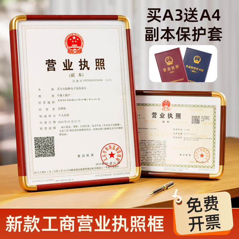 营业执照框架正副本a3a4挂墙工商食品卫生许可三合一展示证书相框