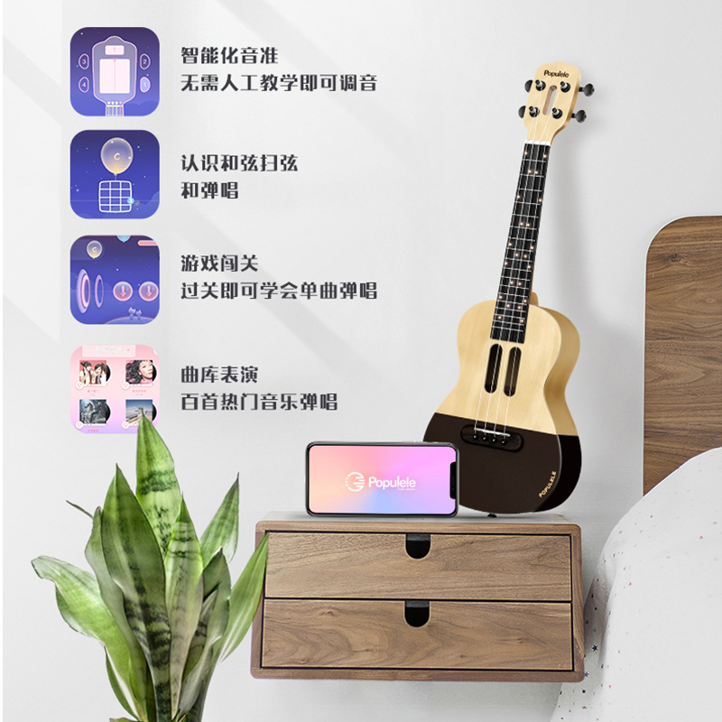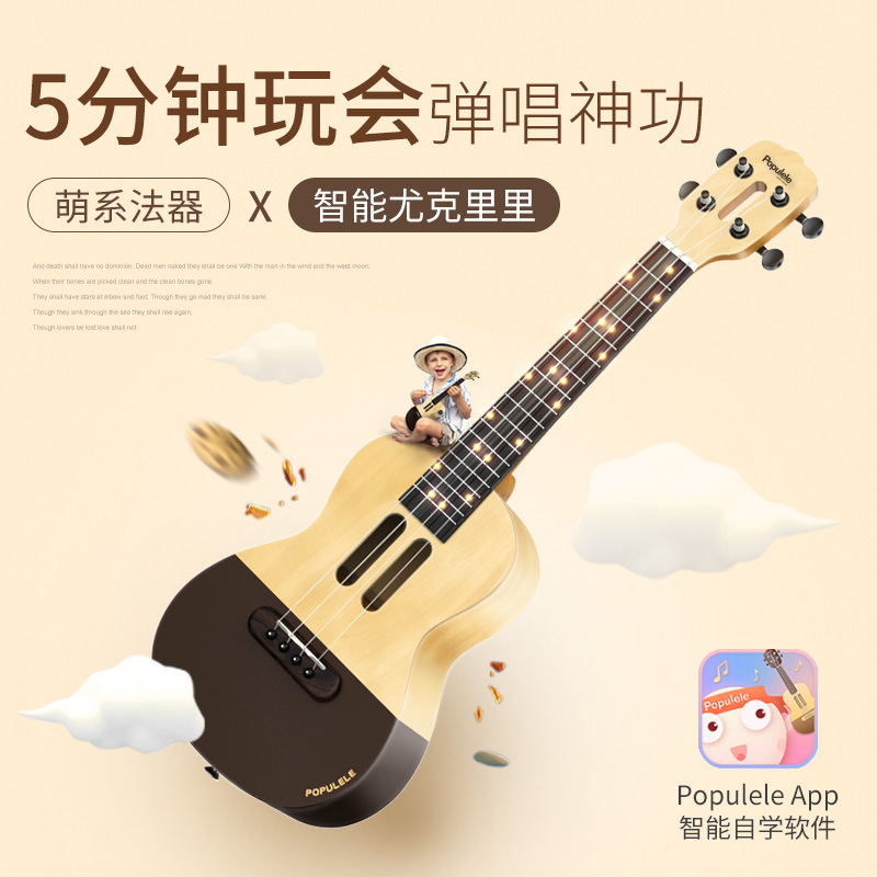 尤克里里音乐密码 Populele初学入门智能款自学乌克里里U1饼干款