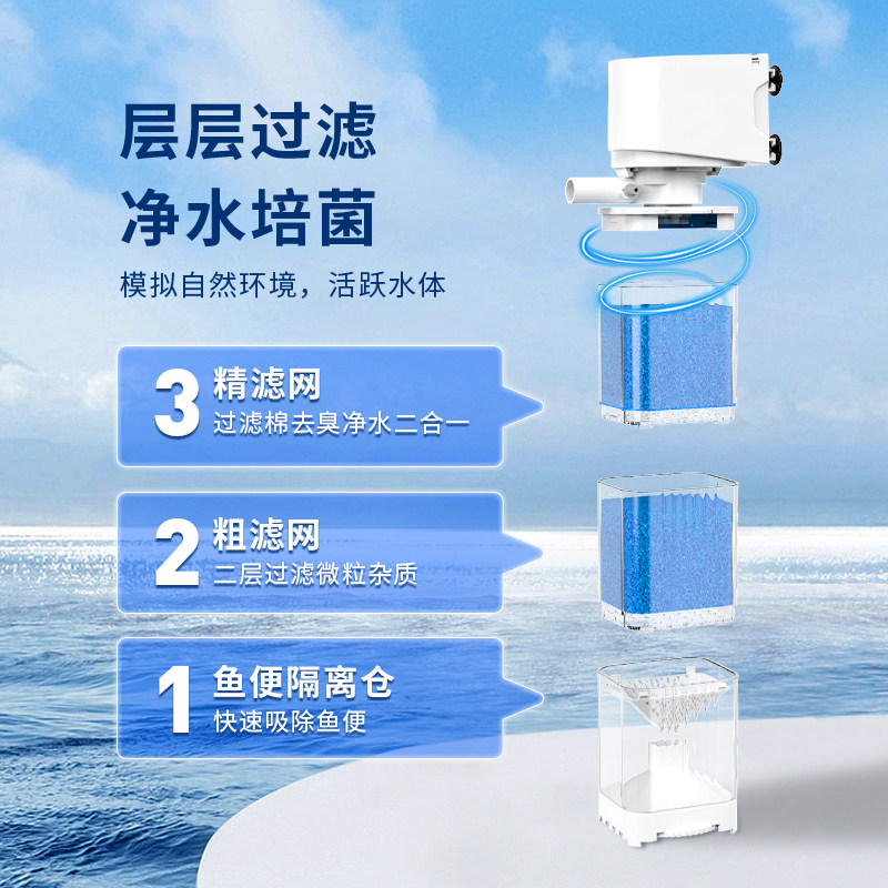 鱼缸循环水泵制氧一体机内置过滤器净水五合一鱼马桶粪便分离吸便