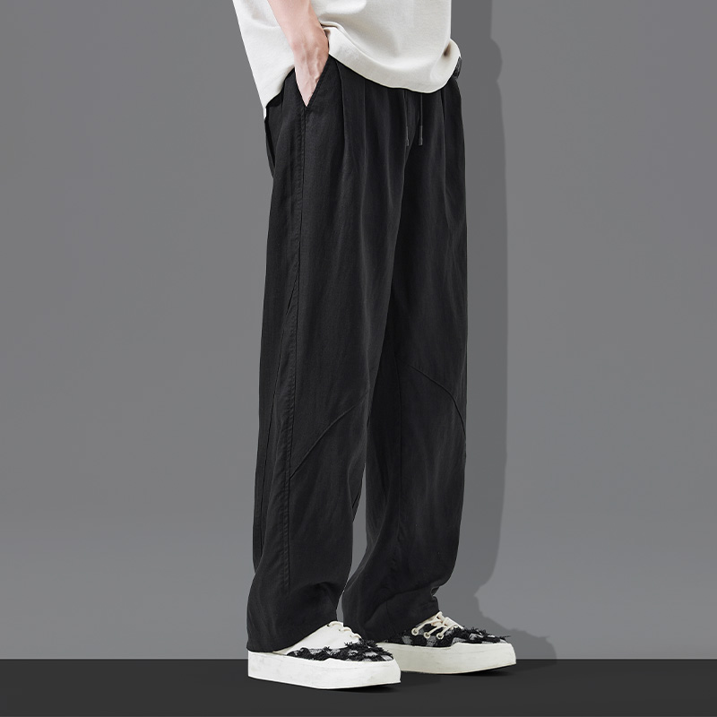 亚麻天丝休闲裤男夏季新款莱赛尔凉感宽松直筒裤男士薄款冰丝裤子