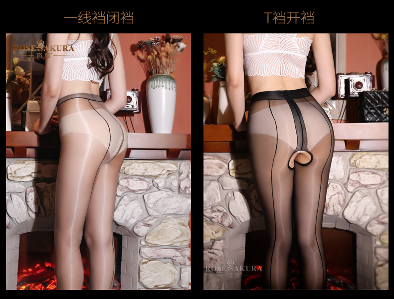 RK腿背虾线一线裆/开档马油亮丝袜10D超薄透明复古性感镂空连裤袜