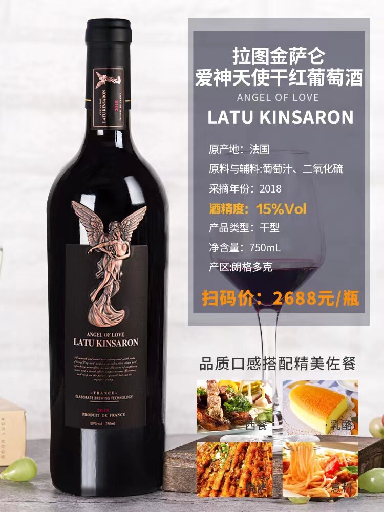 (撩客服享优惠价)红酒法国进口拉图金萨仑爱神天使干红葡萄酒