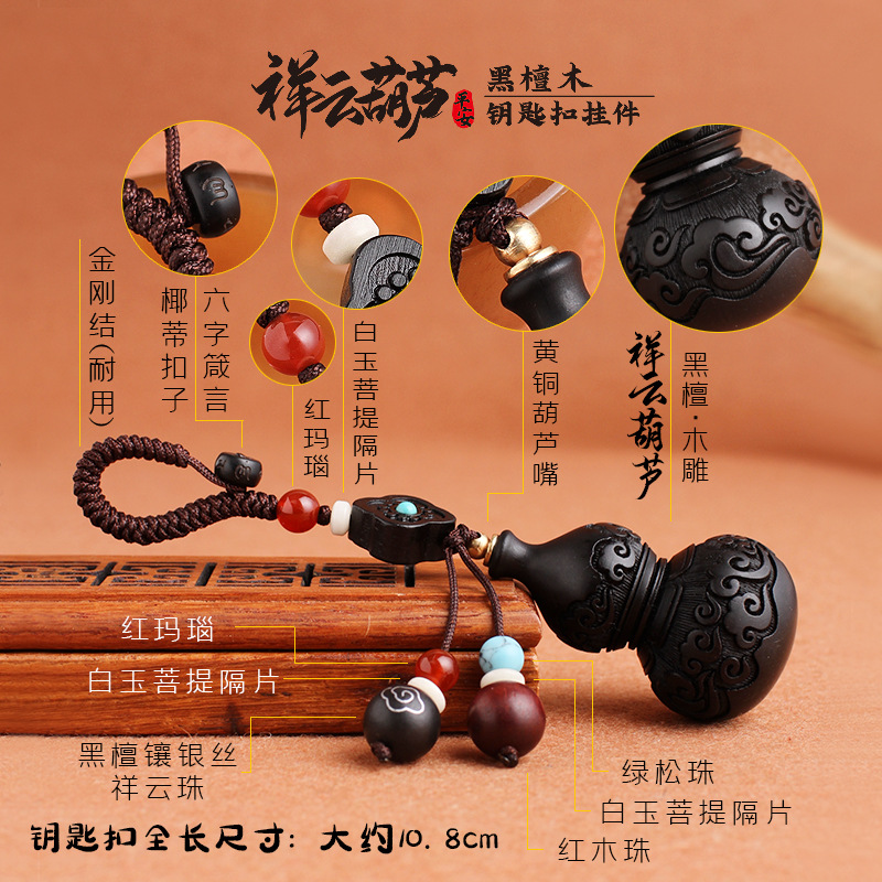 高端创意个性黑檀木葫芦挂件男女汽车钥匙扣钥匙链保平安创意手工
