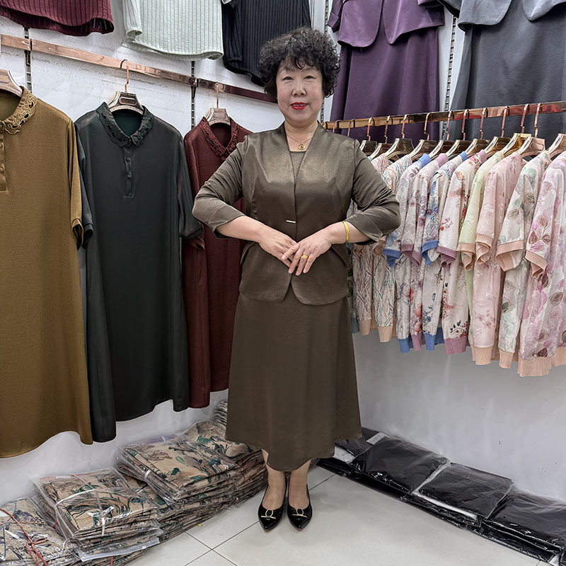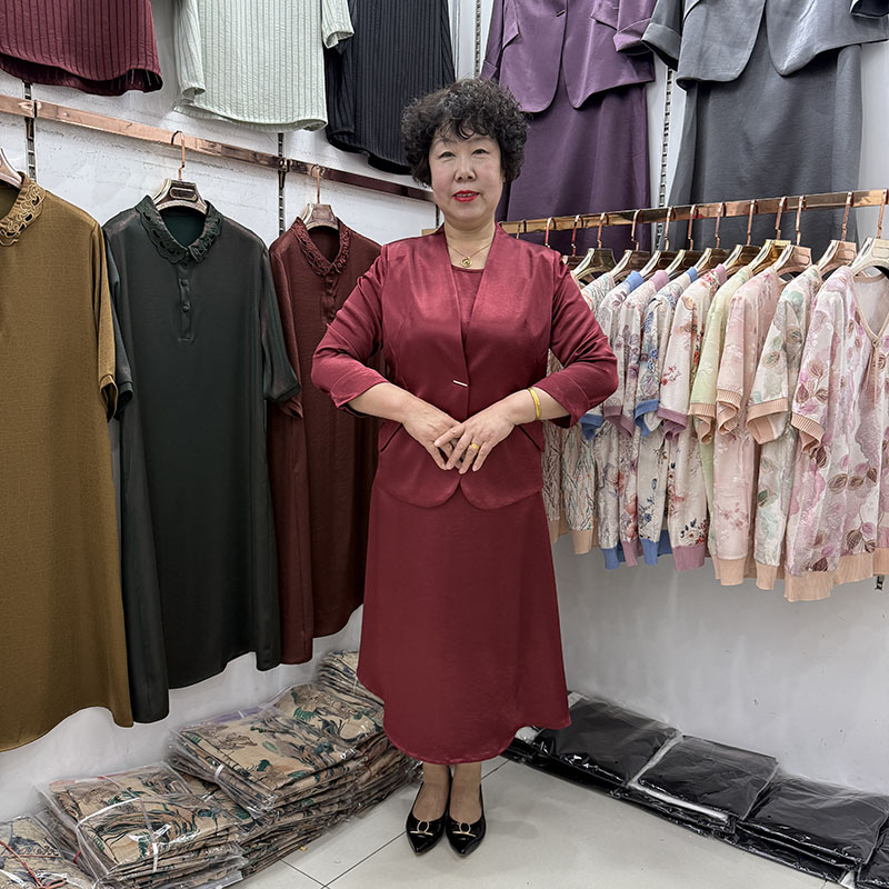 高档中年妈妈春夏款香云纱减龄两件套显瘦背心红色婚宴礼服裙西装