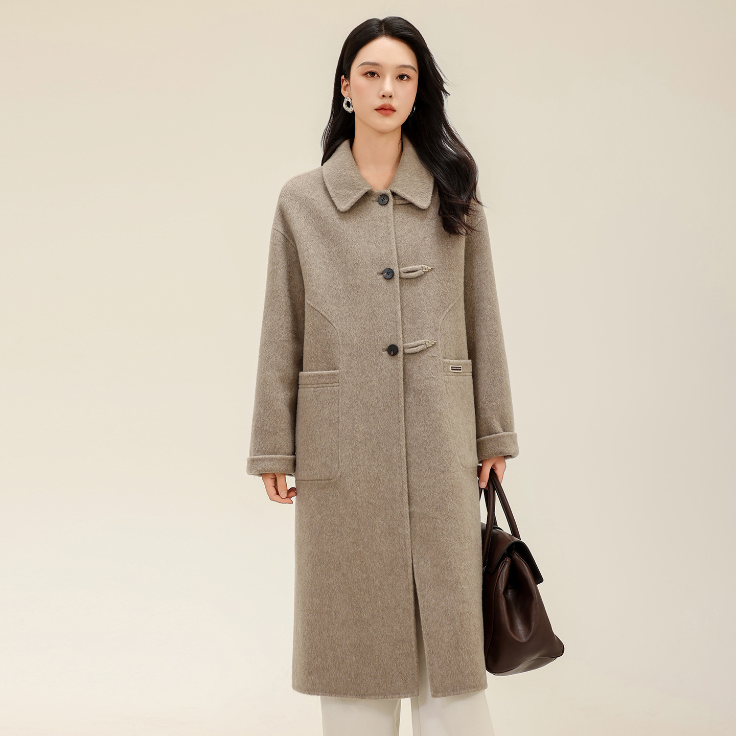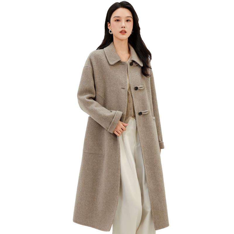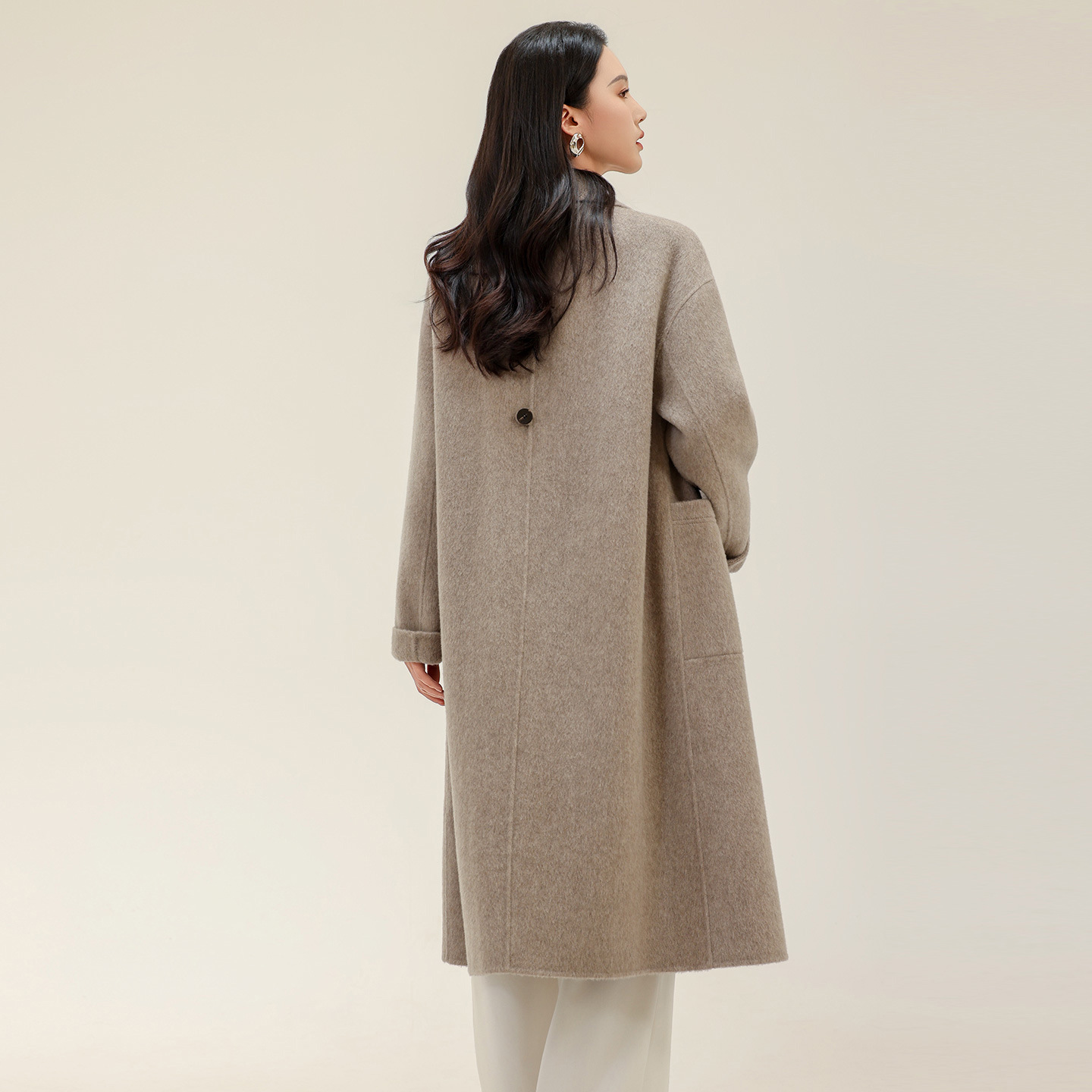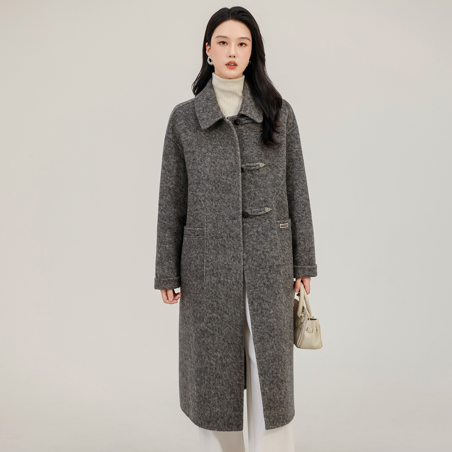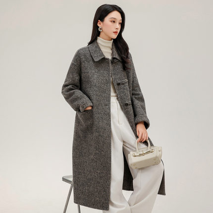 韩版简约休闲时尚宽松毛呢外套2025秋冬新款双面羊毛大衣羊绒