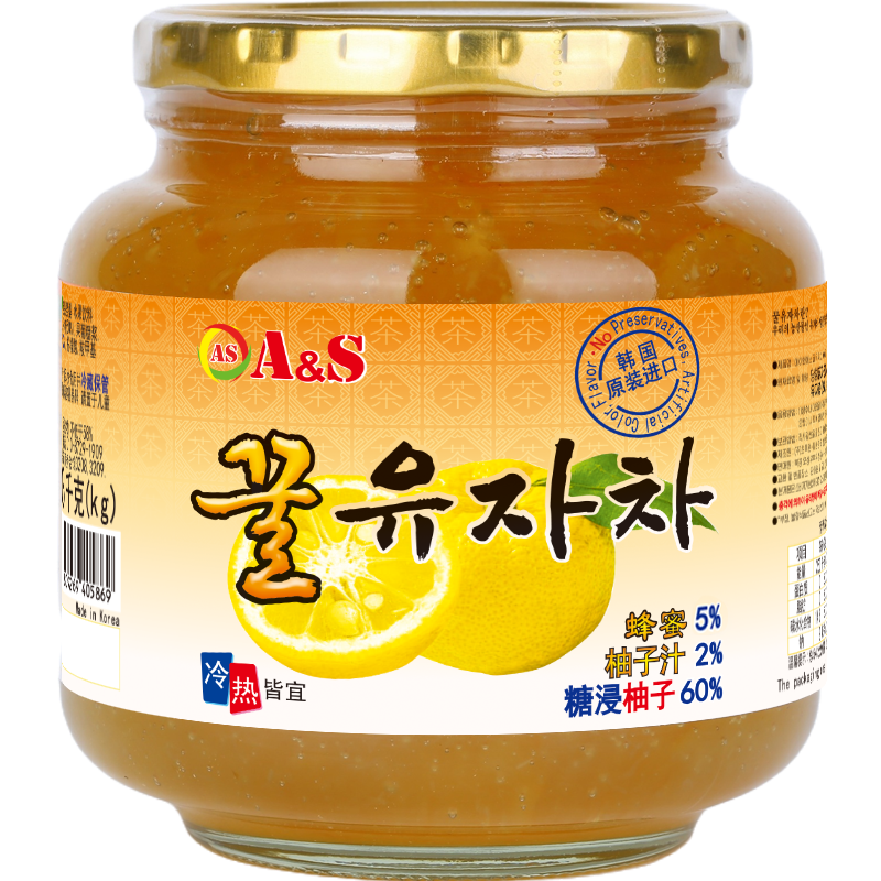 韩国进口 AS奥尚蜂蜜柚子茶1080克 柚子果酱果味茶 新藏外包邮