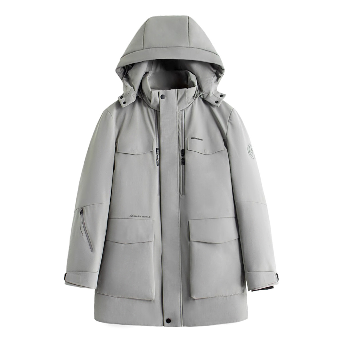鹅绒服 男装【冰】冬装 MO术贴袖口防风连帽派克羽绒服XL019