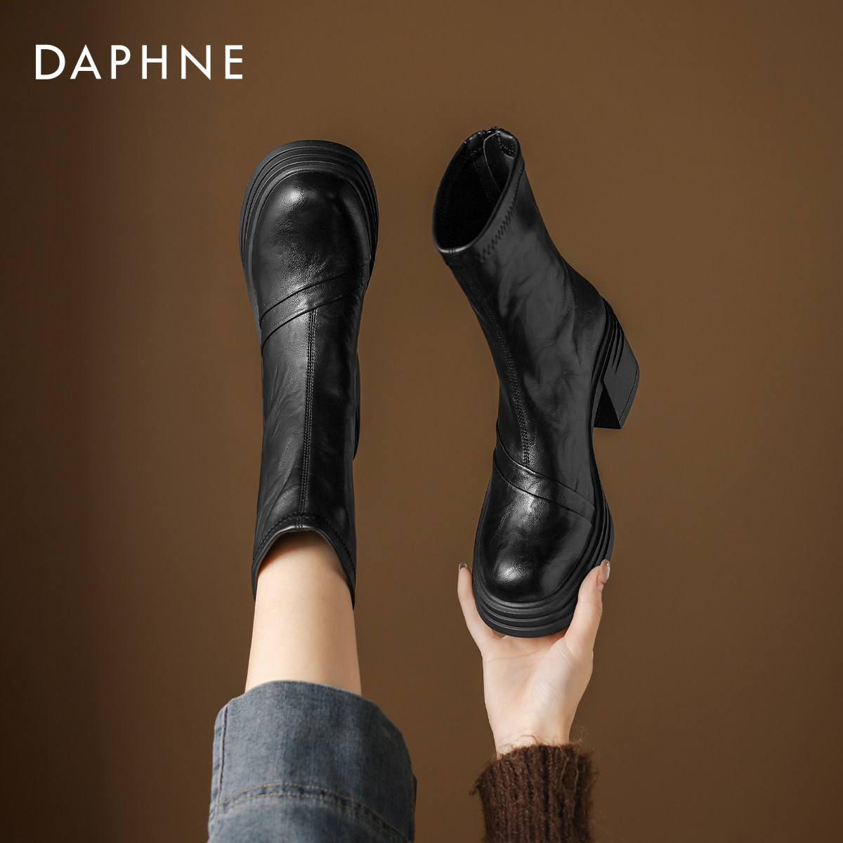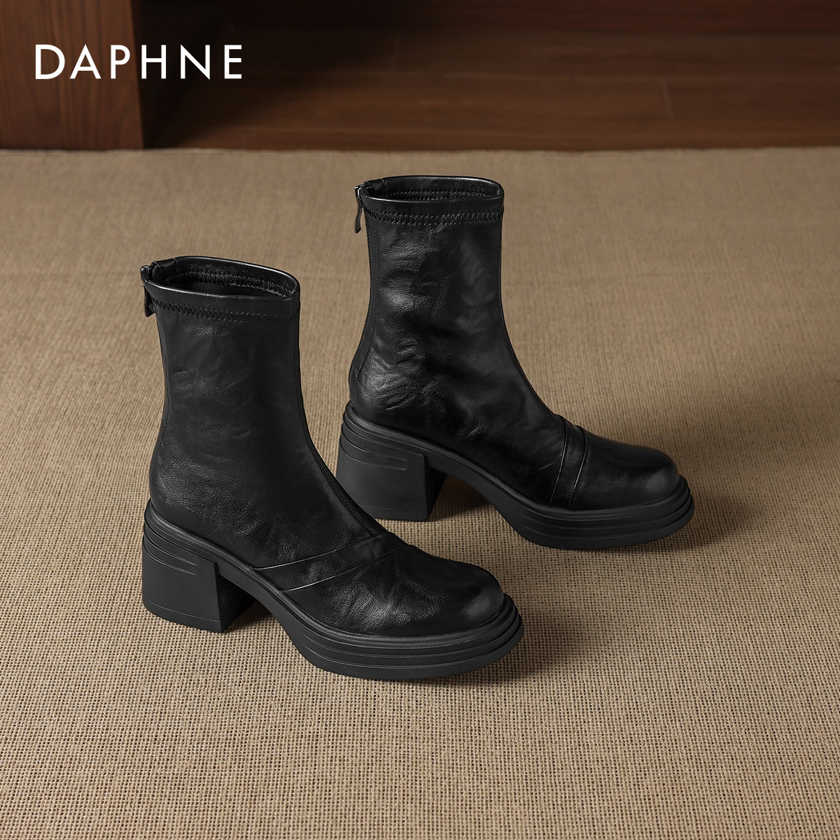 达芙妮高跟短靴女2025新款冬季加绒女鞋厚底马丁靴瘦瘦靴粗跟靴子