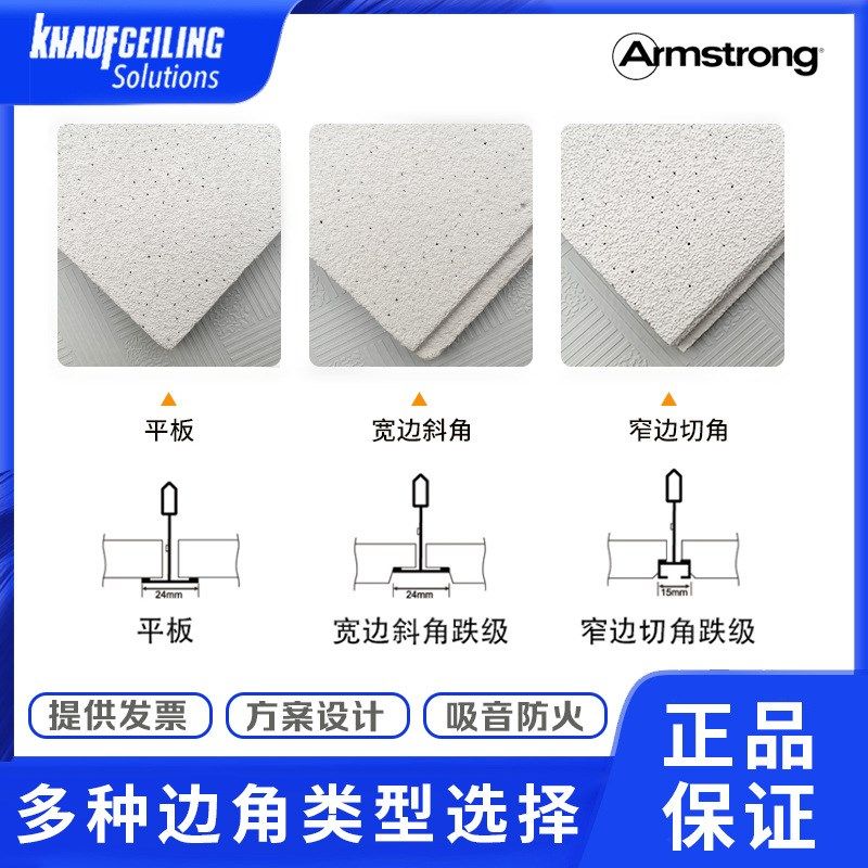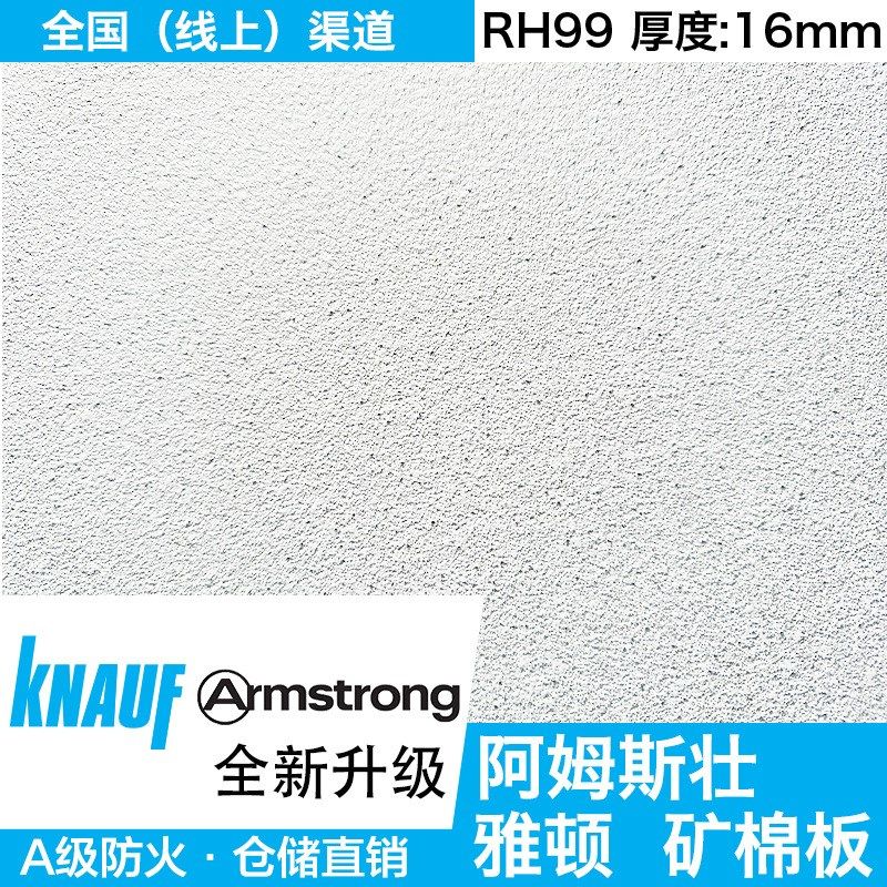 阿姆斯壮可耐福无孔雅顿喷磨砂颗粒吸音无花纹矿棉板RH99耐潮天花