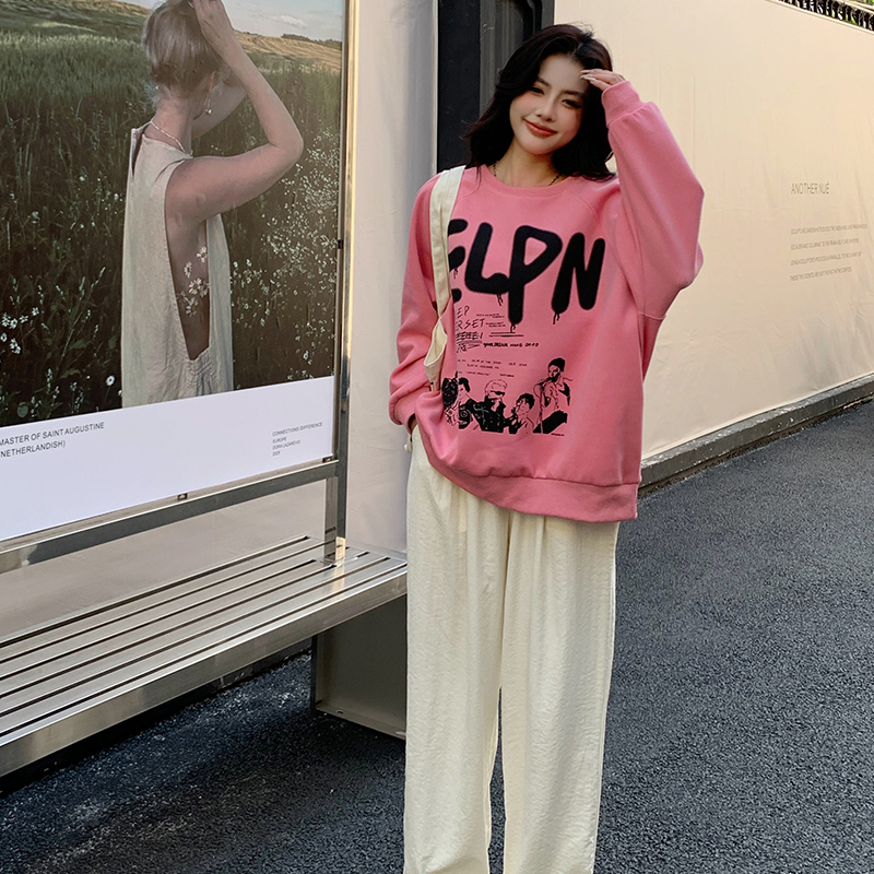 小吉家大码女装秋季宽松显瘦韩版印花卫衣宽松减龄百搭长袖上衣女
