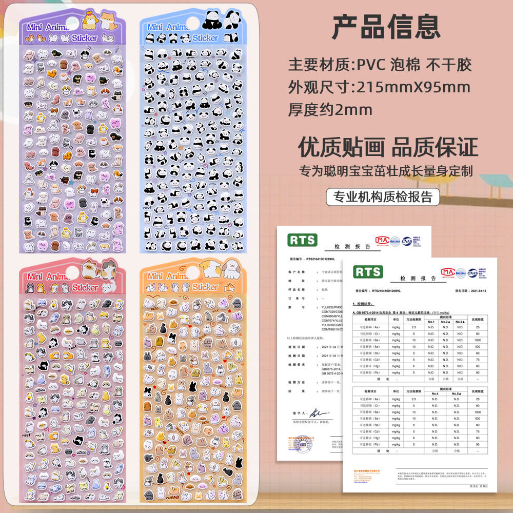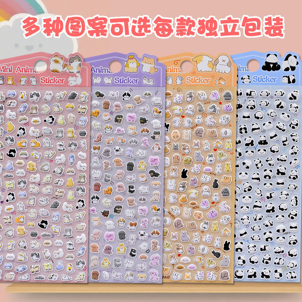 可爱萌宠小猫咪熊猫立体泡泡贴纸