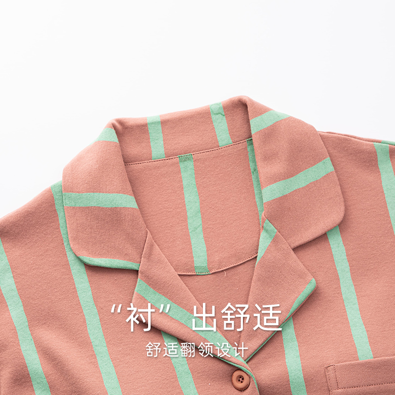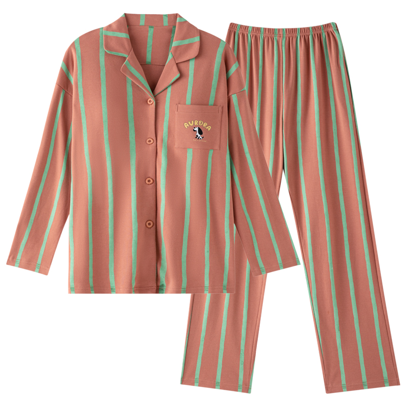 浪莎春秋季带胸垫睡衣女2025年新款纯棉长袖秋冬高级感条纹家居服