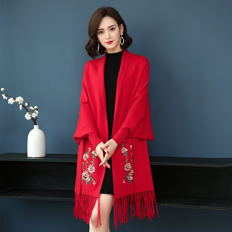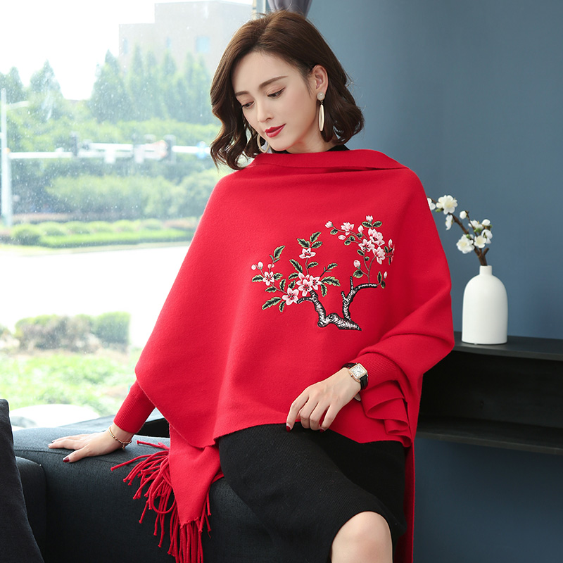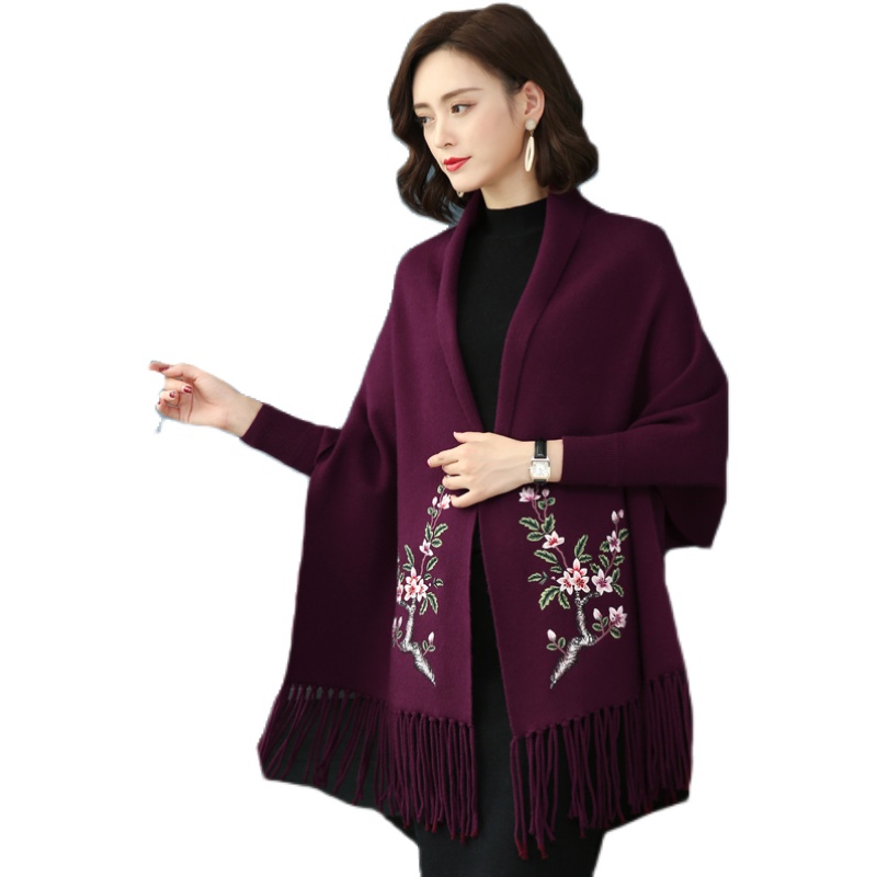 羊毛披肩女秋冬斗篷外套妈妈婚礼配旗袍外搭带袖围巾两用加厚